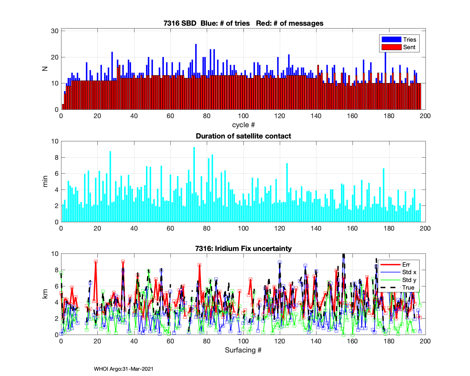 Argo Float: 7316 -- Plots based on telemetry data decoded at WHOI