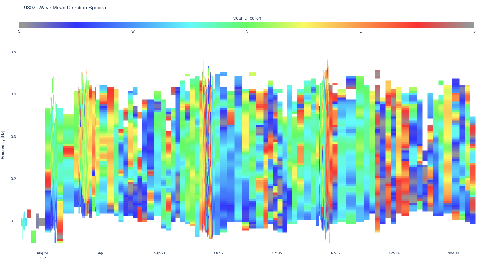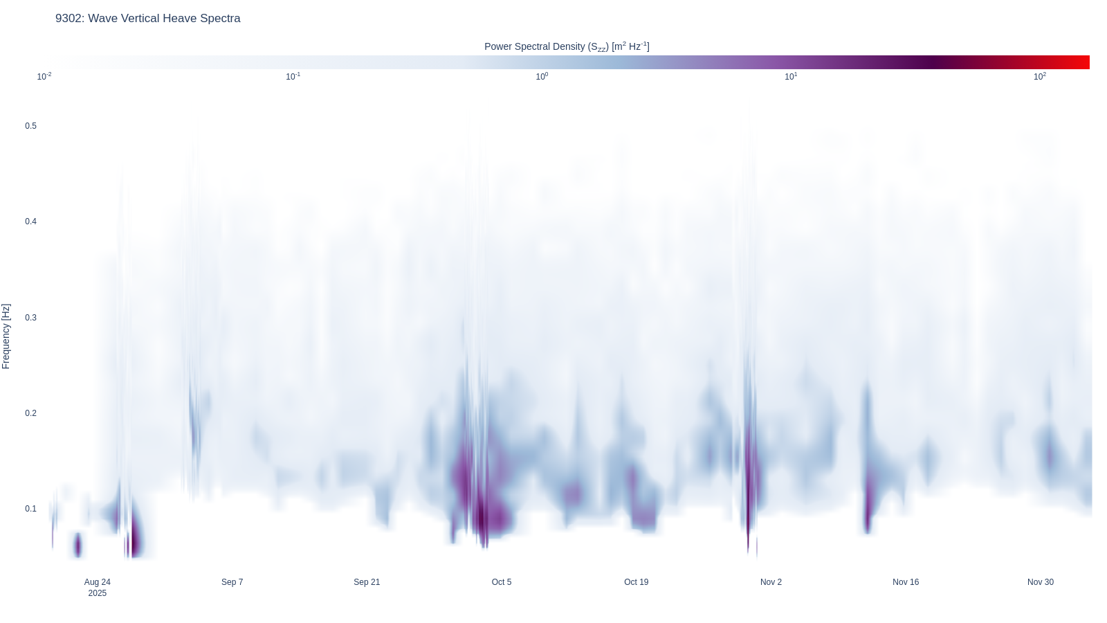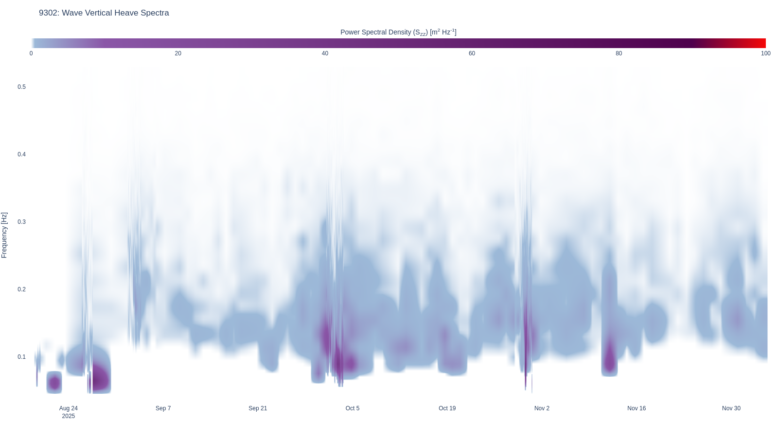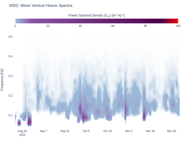 | 94 | Wave Vertical Heave Spectra | wave | wave_waterfall_disp_Szz .html (2847.1kB) .png [780x615] (200.8kB) .png [1600x900] (500.0kB) | |