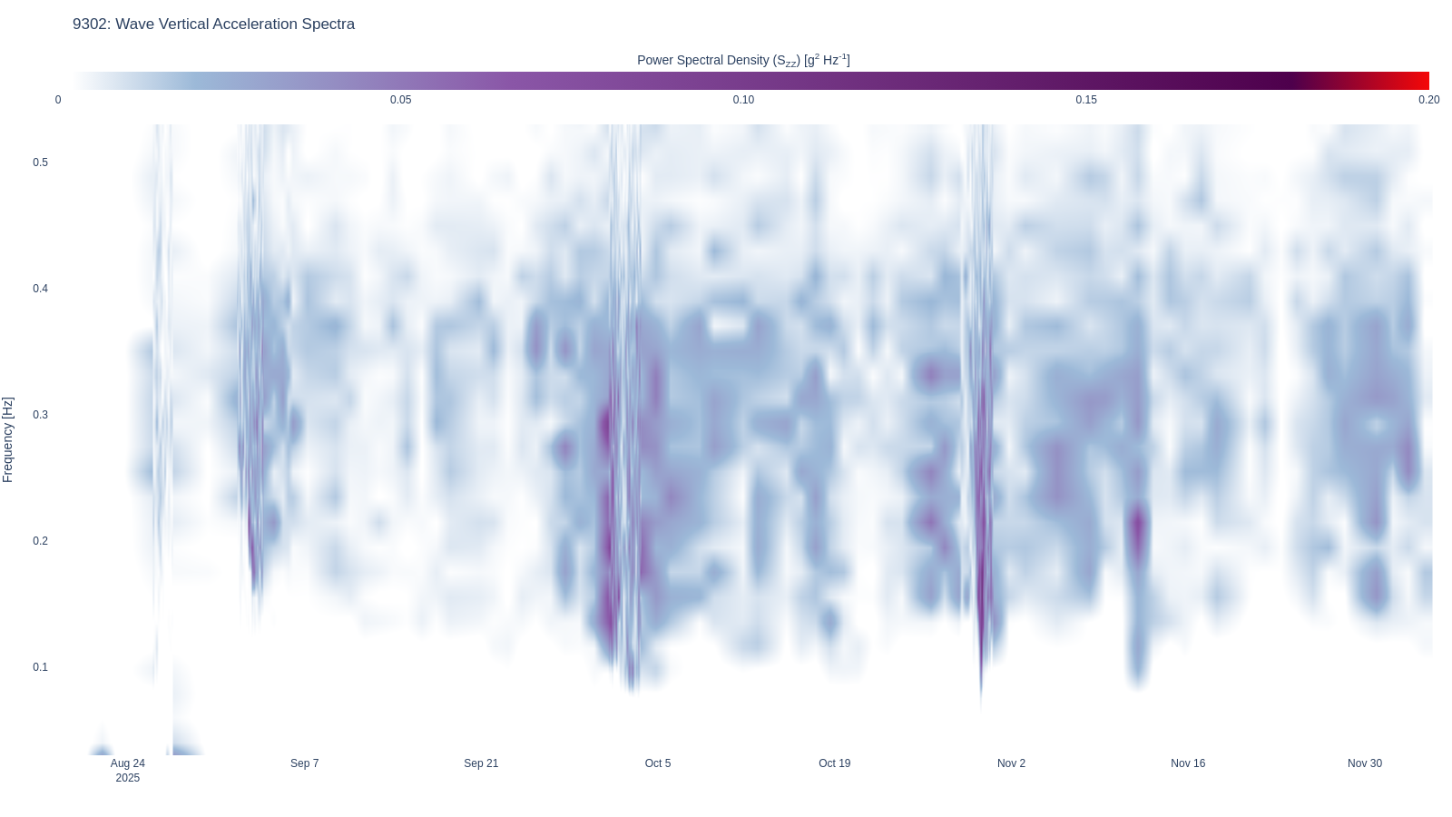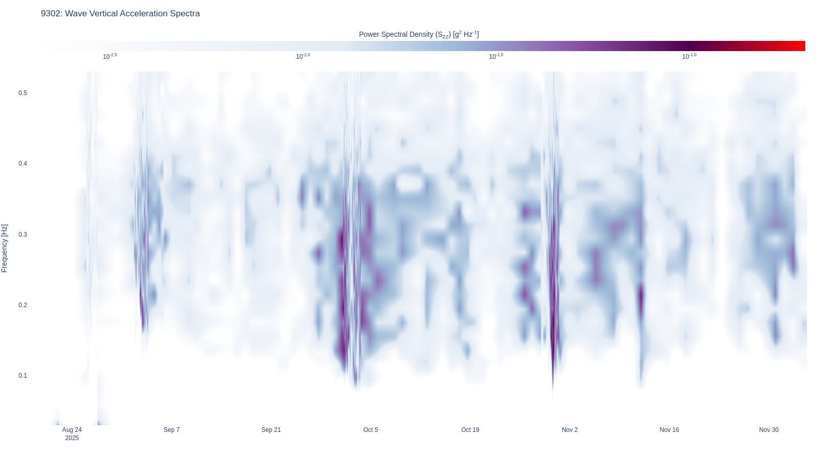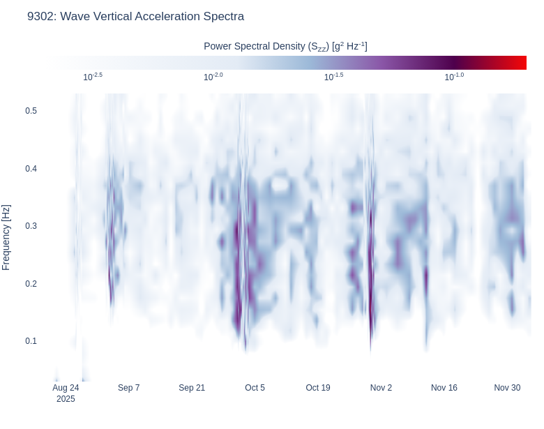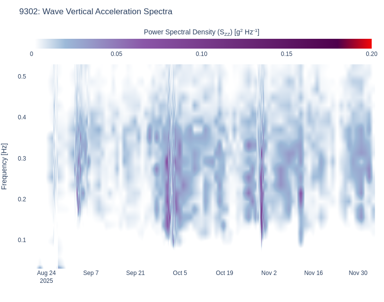 | 93 | Wave Vertical Acceleration Spectra | wave | wave_waterfall_accel_Szz_linear .html (2621.2kB) .png [780x615] (288.5kB) .png [1600x900] (755.4kB) | |