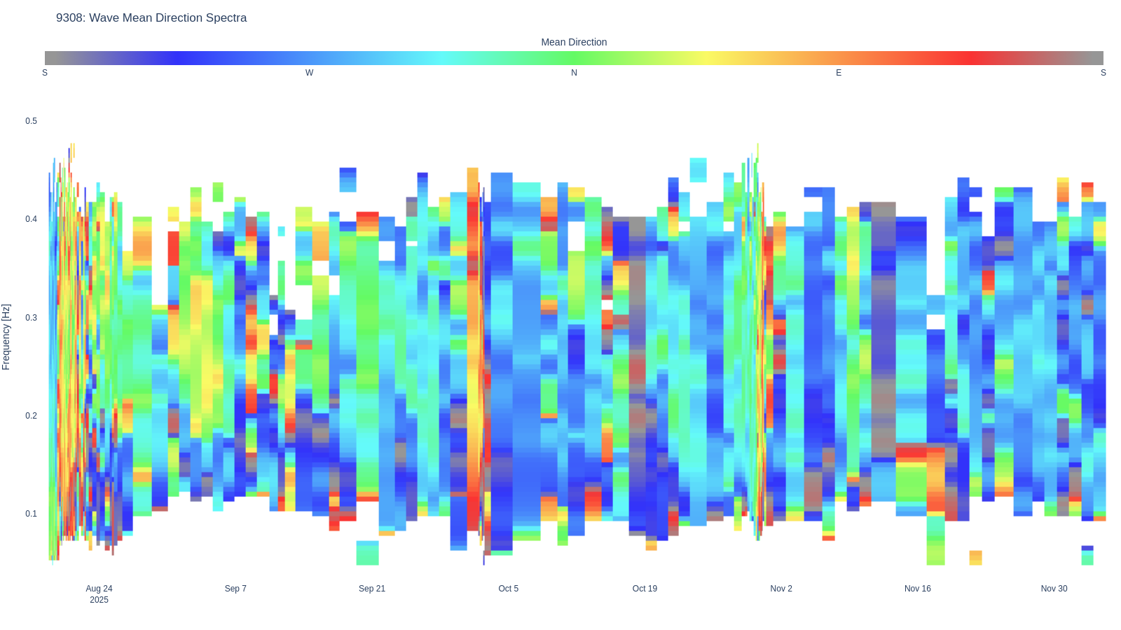 | 85 | Wave East-West Horizontal Heave Spectra (SXX) | wave | wave_spectra_disp_Sxx .html (1452.5kB) .png [780x515] (225.8kB) .png [1600x900] (748.5kB) | |
