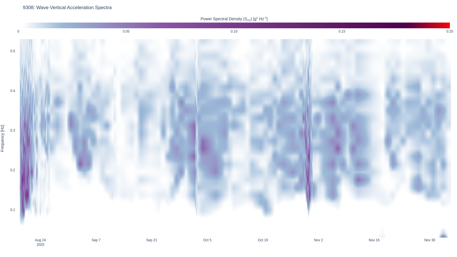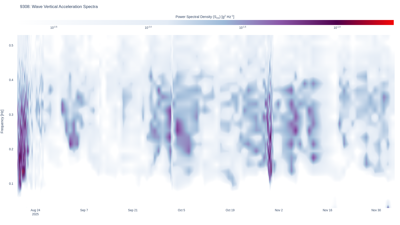 | 92 | Wave Vertical Acceleration Spectra | wave | wave_waterfall_accel_Szz .html (2185.9kB) .png [780x615] (295.9kB) .png [1600x900] (759.3kB) | |