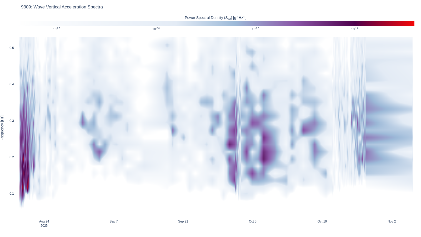 | 82 | Wave Vertical Acceleration Spectra (SZZ) | wave | wave_spectra_accel_Szz .html (1707.9kB) .png [780x515] (536.2kB) .png [1600x900] (1708.4kB) | |