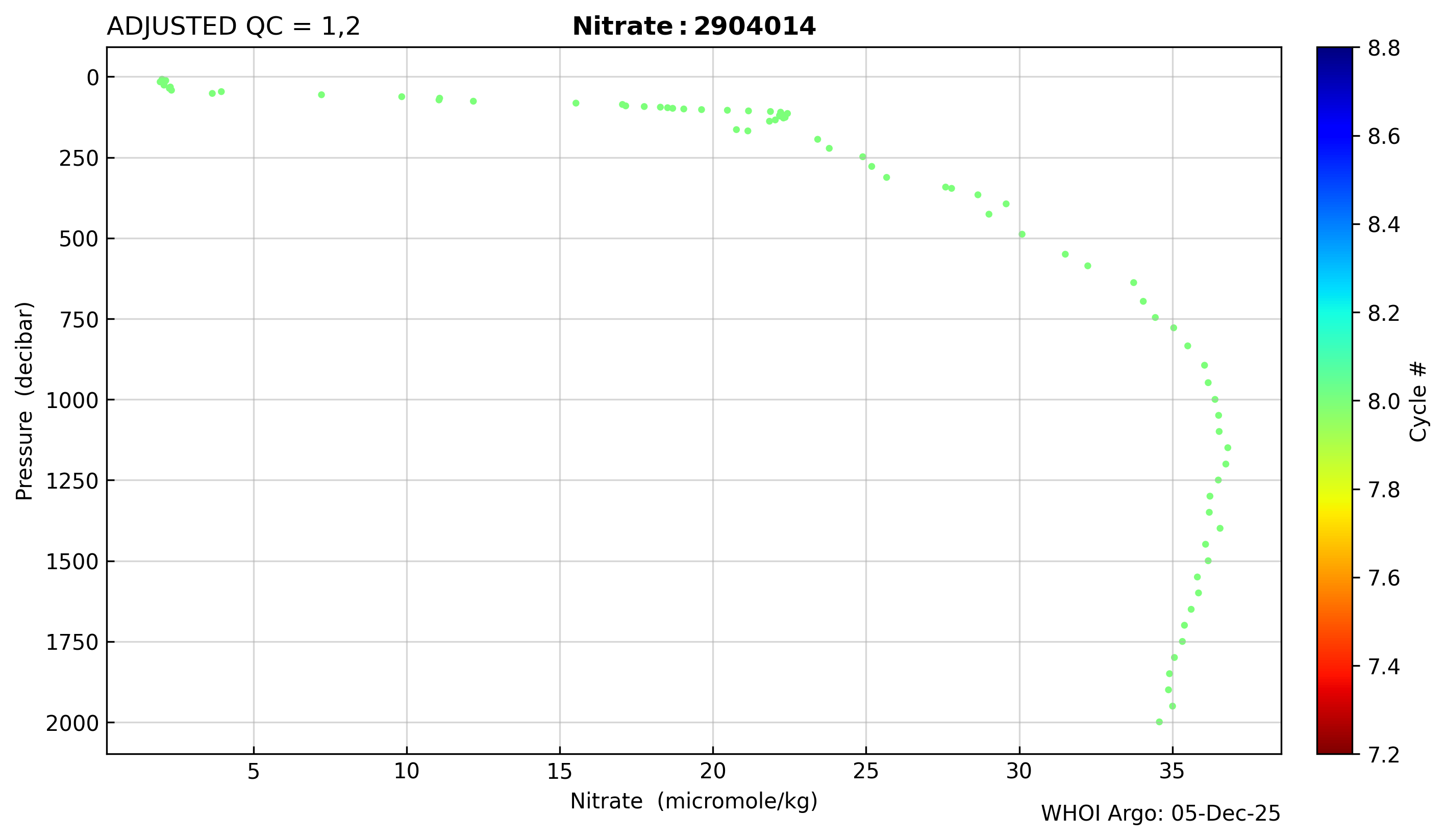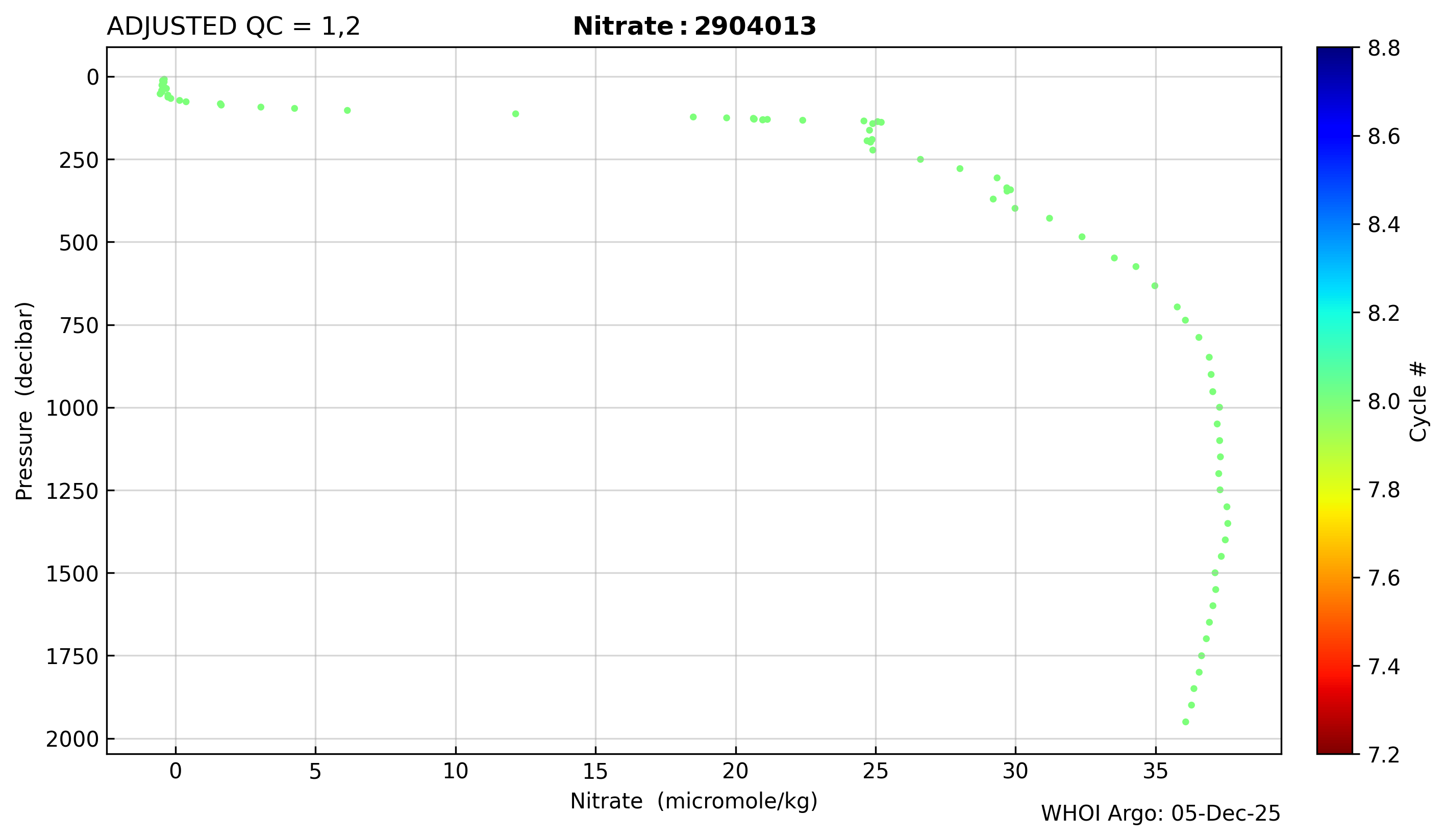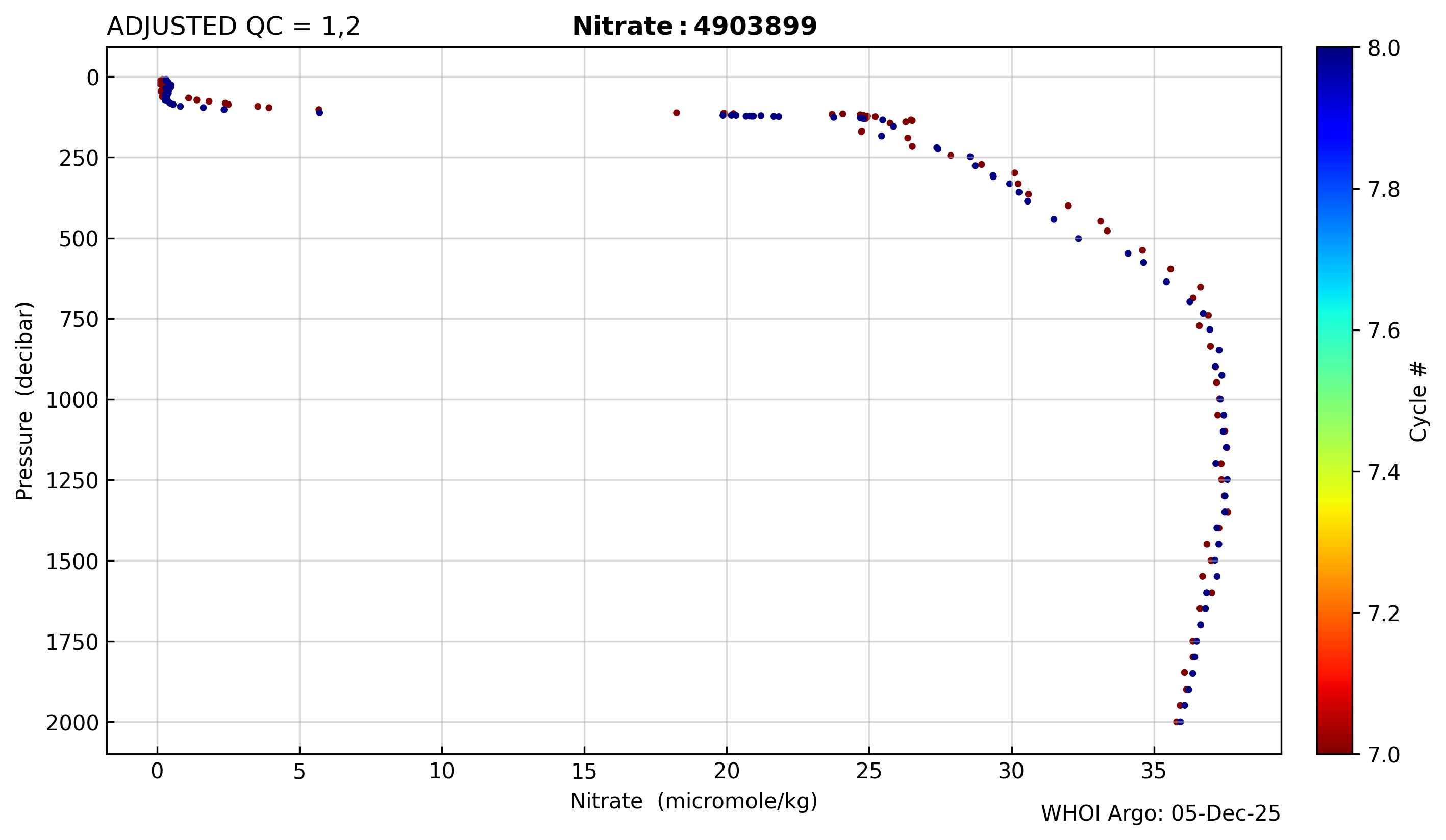 | WMO: #3902615 NAVISIR_TSOPJ1: #1585 IRIDIUM SBE41CP: #19465 DRUCK: #12198126 Deployed: 2025-01-09 Discovery, DY-187-2025 | ![]() |