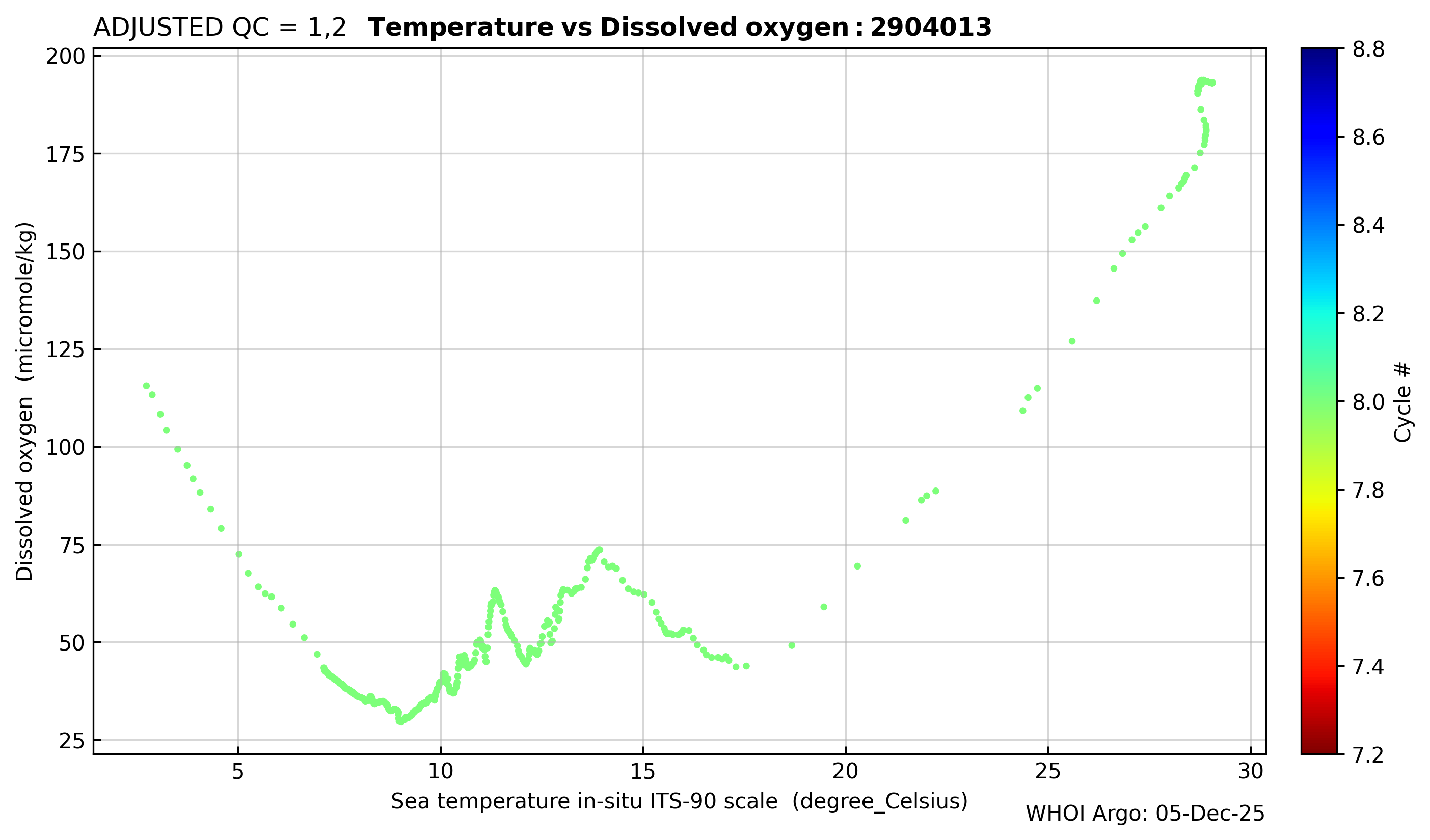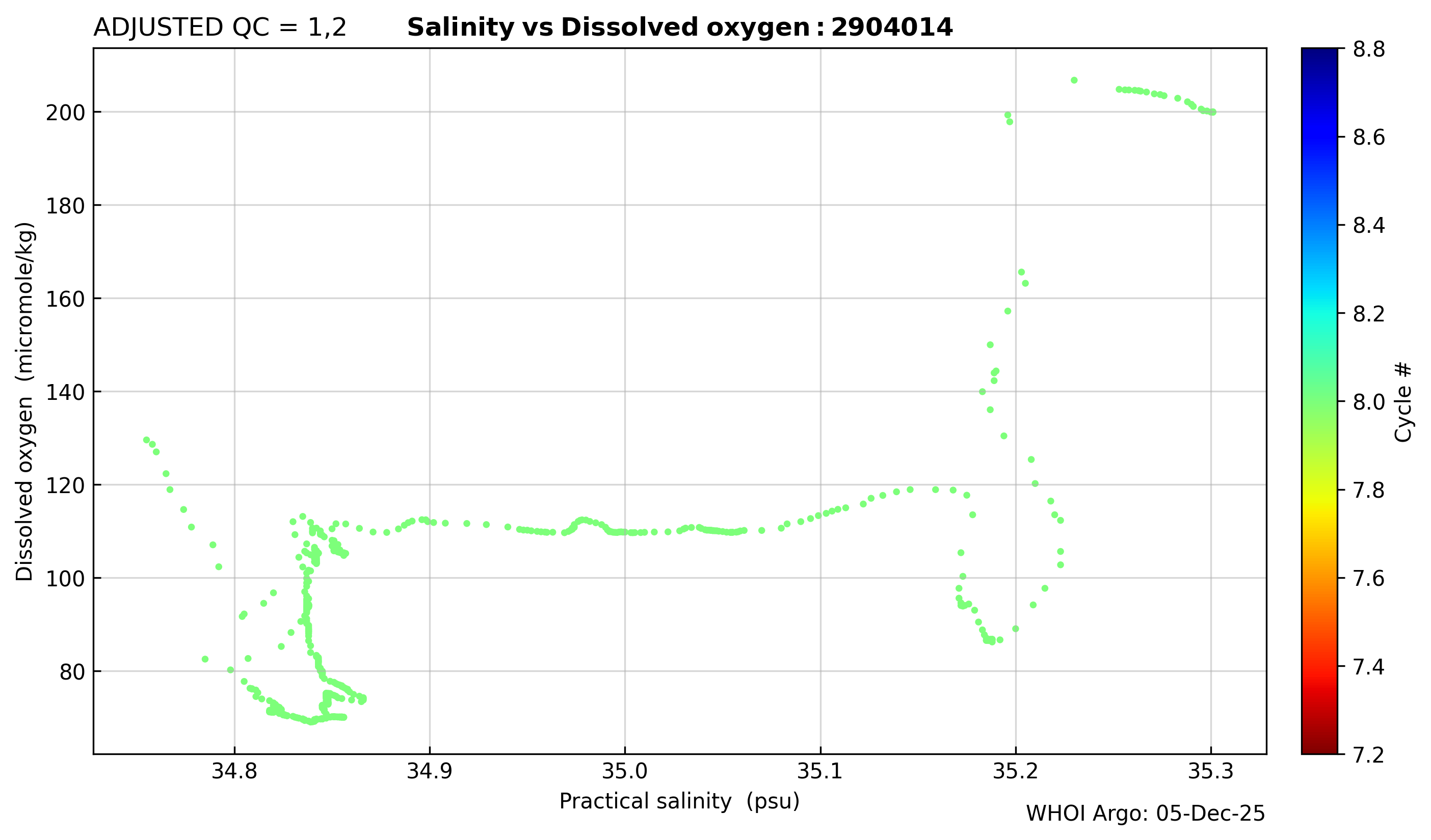 | WMO: #3902615 NAVISIR_TSOPJ1: #1585 IRIDIUM SBE41CP: #19465 DRUCK: #12198126 Deployed: 2025-01-09 Discovery, DY-187-2025 | ![]() |