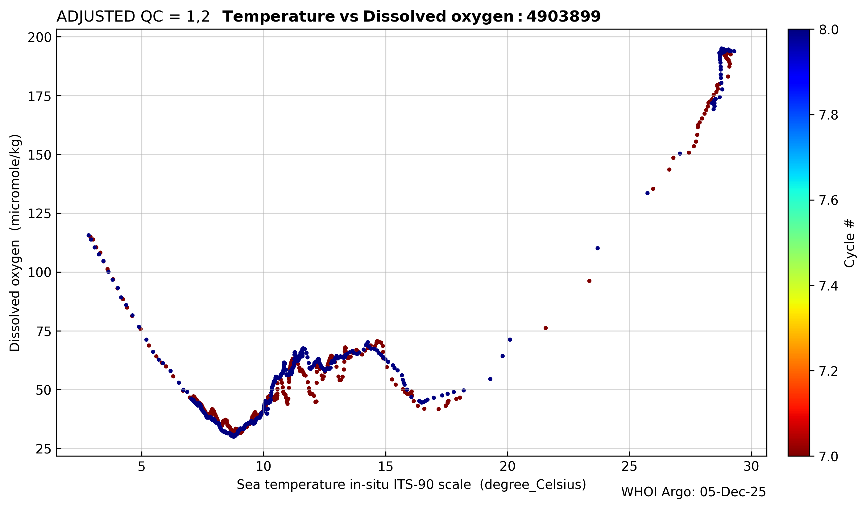 | WMO: #7902226 NAVISIR_TSOPJ1: #1584 IRIDIUM SBE41CP: #19415 DRUCK: #12197076 Deployed: 2025-01-08 Discovery, DY-187-2025 | ![]() |