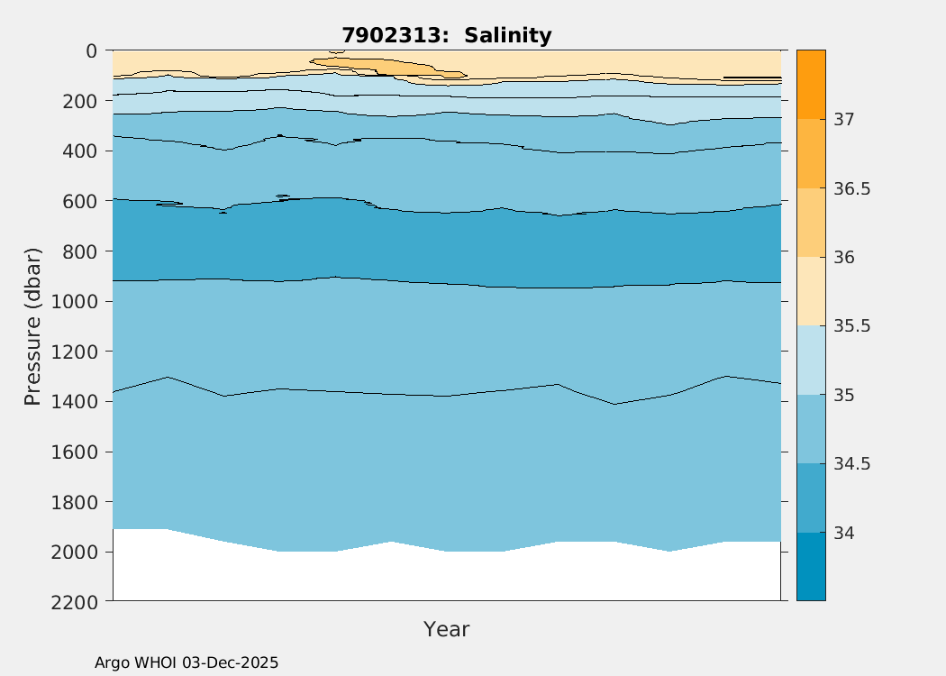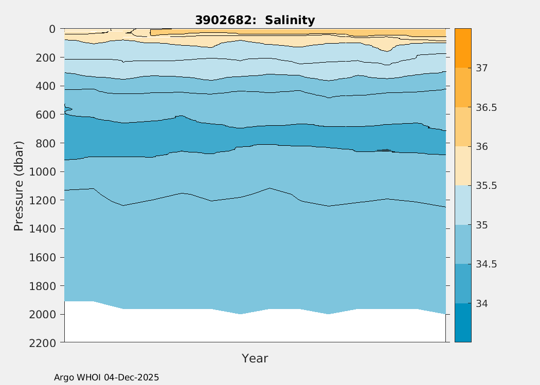 | WMO: #4903830 NAVISIR_TSOPJ1: #1640 IRIDIUM SBE41CP: #19908 DRUCK: #12405544 Deployed: 2025-01-10 Discovery, DY-187-2025 | ![]() |