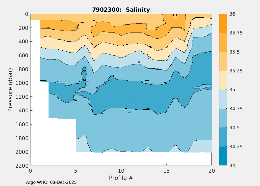 | WMO: #7902226 NAVISIR_TSOPJ1: #1584 IRIDIUM SBE41CP: #19415 DRUCK: #12197076 Deployed: 2025-01-08 Discovery, DY-187-2025 | ![]() |