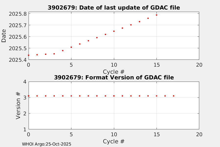| WMO: #3902615 NAVISIR_TSOPJ1: #1585 IRIDIUM SBE41CP: #19465 DRUCK: #12198126 Deployed: 2025-01-09 Discovery, DY-187-2025 | ![]() |