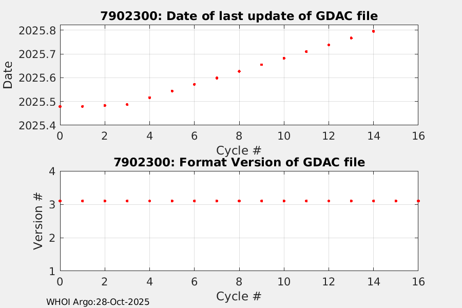 | WMO: #7902226 NAVISIR_TSOPJ1: #1584 IRIDIUM SBE41CP: #19415 DRUCK: #12197076 Deployed: 2025-01-08 Discovery, DY-187-2025 | ![]() |
