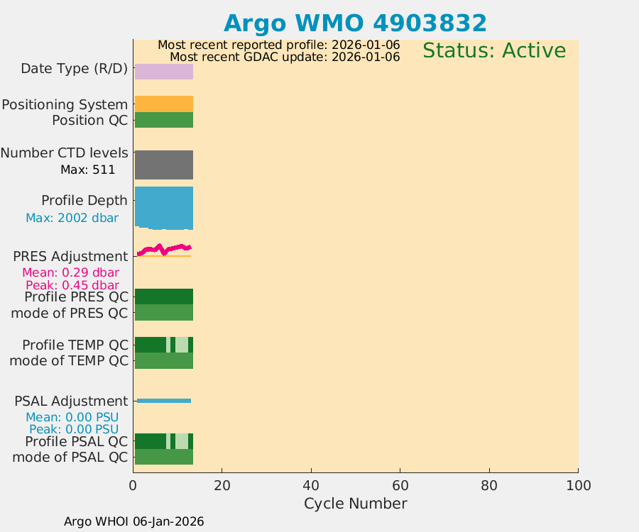 | Metadata | DMQC status | TEMP QC | PSAL QC | PRES QC | GDAC FILE INFO |