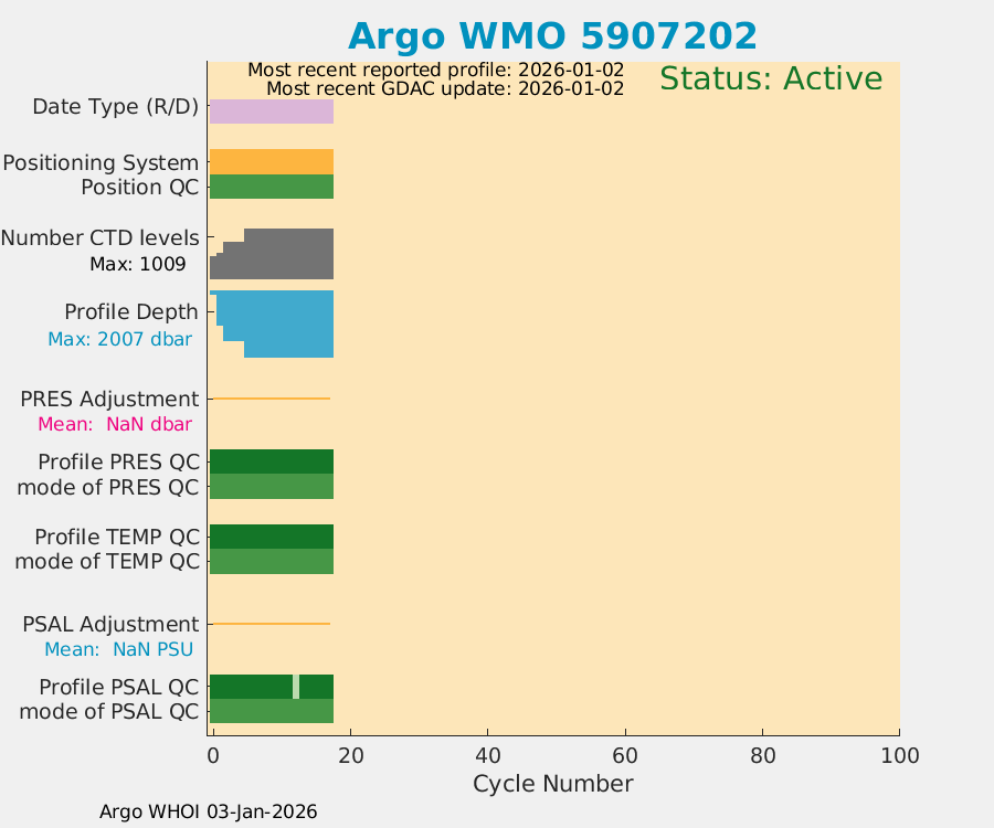 | WMO: #7902226 NAVISIR_TSOPJ1: #1584 IRIDIUM SBE41CP: #19415 DRUCK: #12197076 Deployed: 2025-01-08 Discovery, DY-187-2025 | ![]() |
