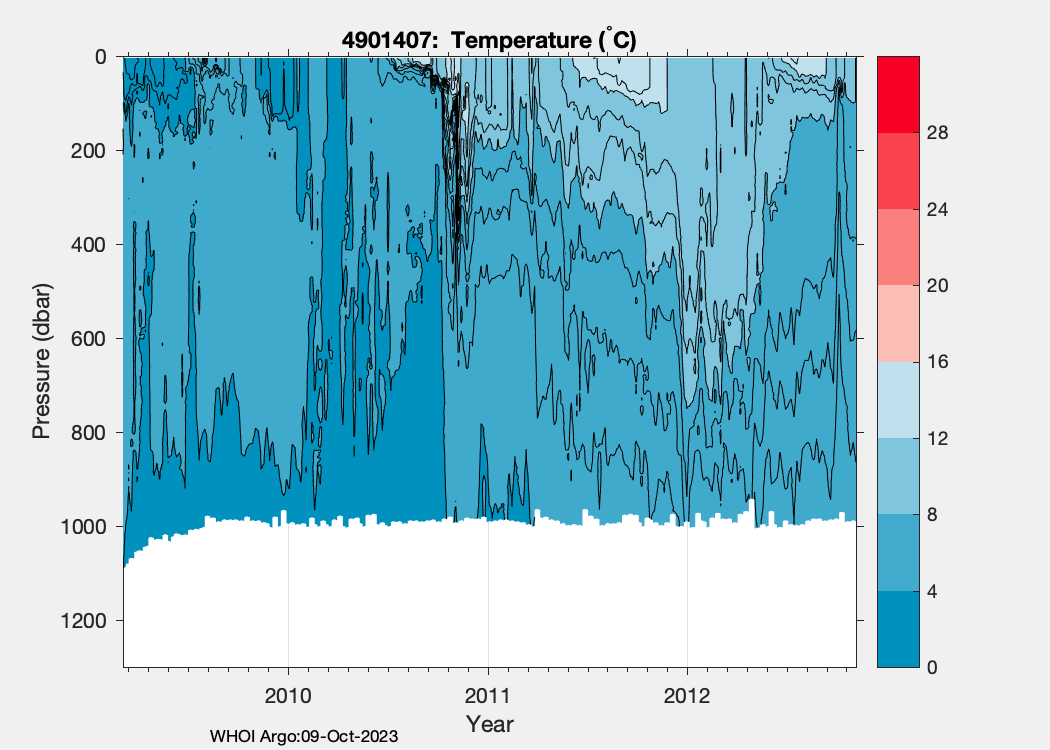 | WMO: #4901046 SOLO_TS16: #988 ARGOS SBE41CP: #2538 Druck: #2774667 Deployed: 2010-08-22 Endeavor, EN-481-2010 | ![]() |