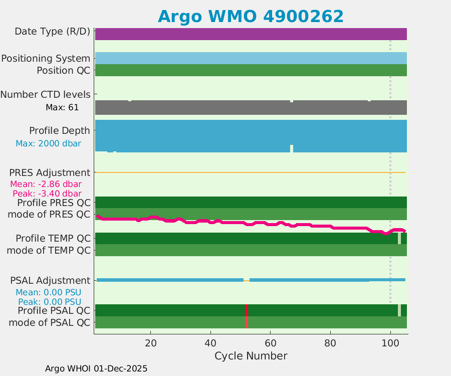 | WMO: #4900261 DAC: coriolis PI: Walter ZENK APEX: # SBE41: #n/a Altimeter Comparison (IFREMER) EuroArgo Link | ![]() |