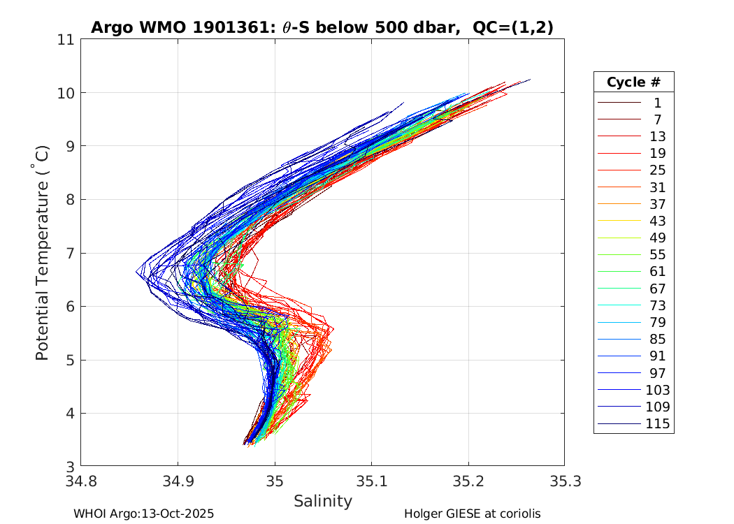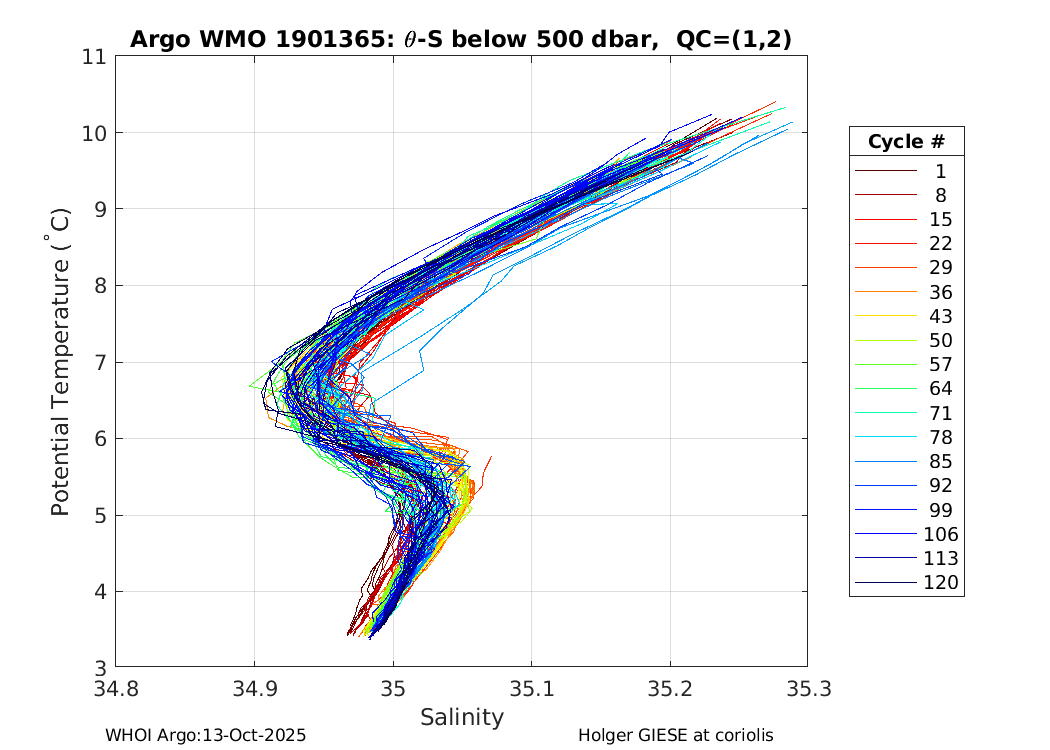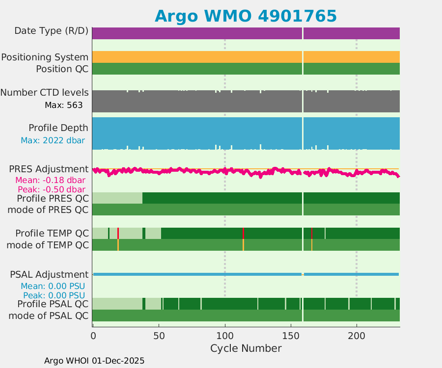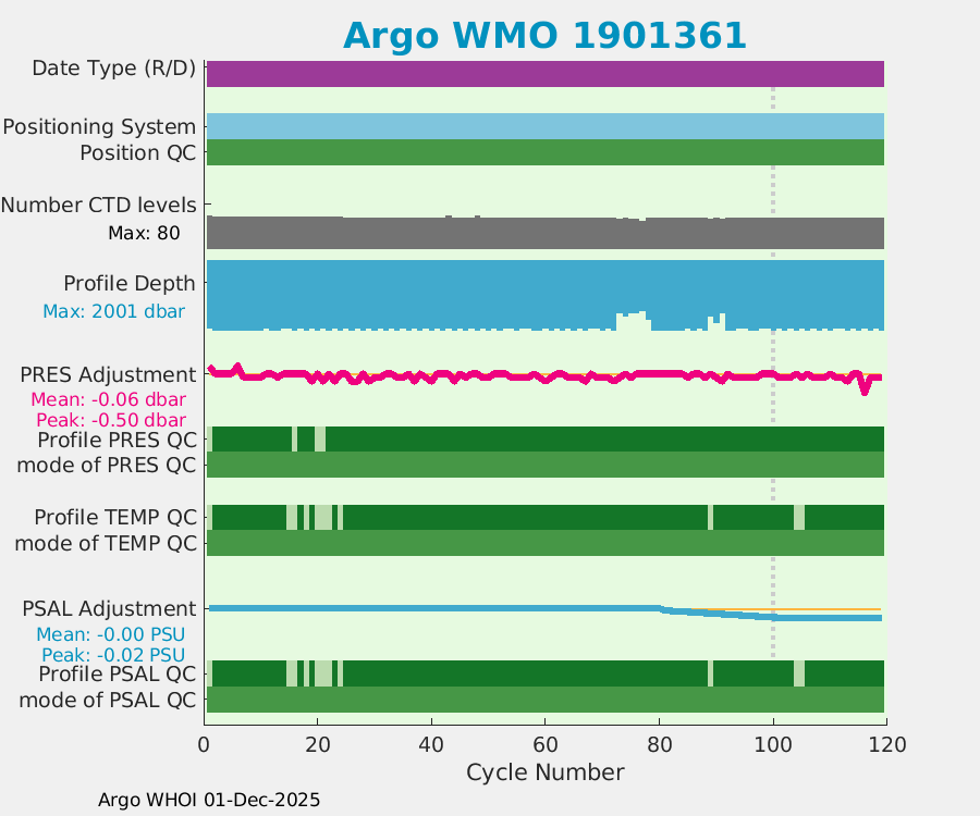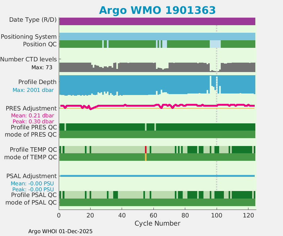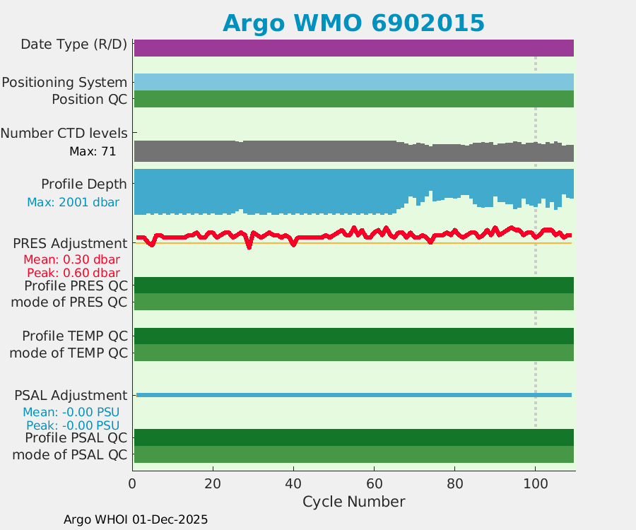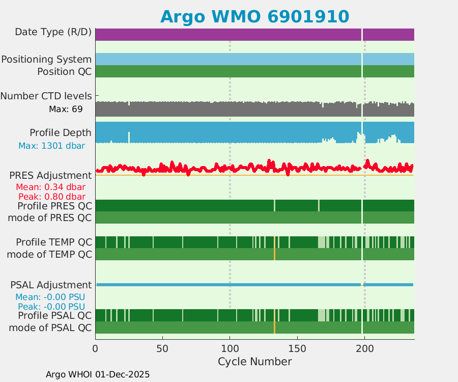 | WMO: #4901625 DAC: aoml PI: BRECK OWENS, STEVEN JAYNE, PELLE ROBBINS S2-A: #7233 SBE41CP: #4907 DRUCK_2900PSIA: #3648542 Altimeter Comparison (IFREMER) EuroArgo Link | ![]() |