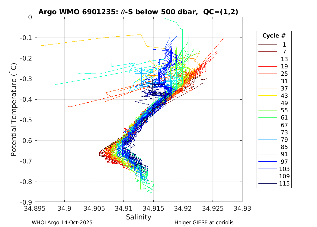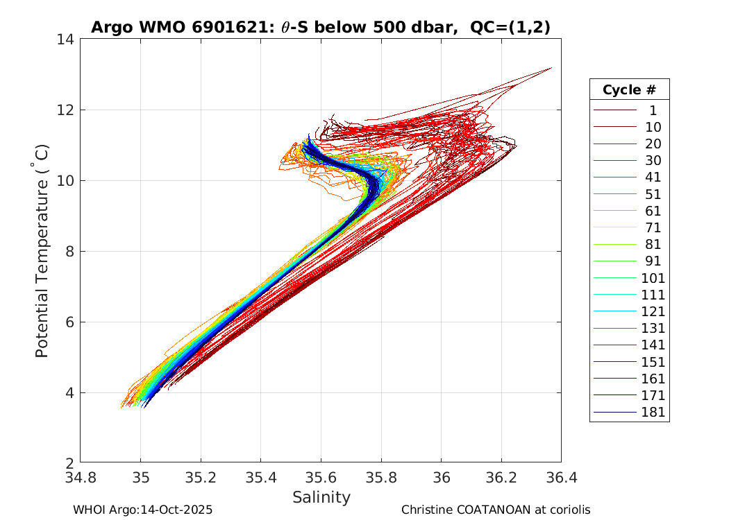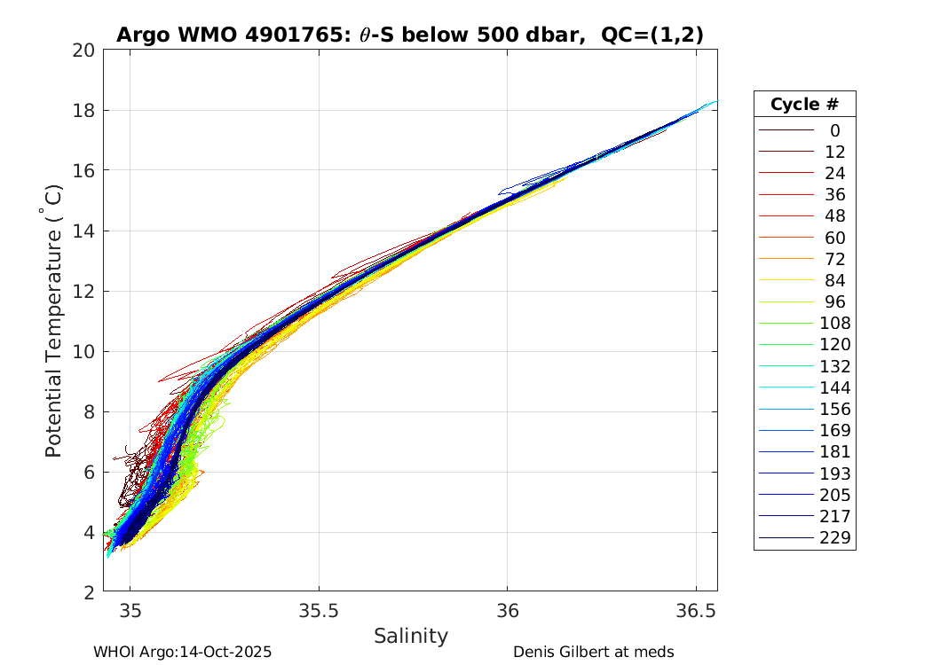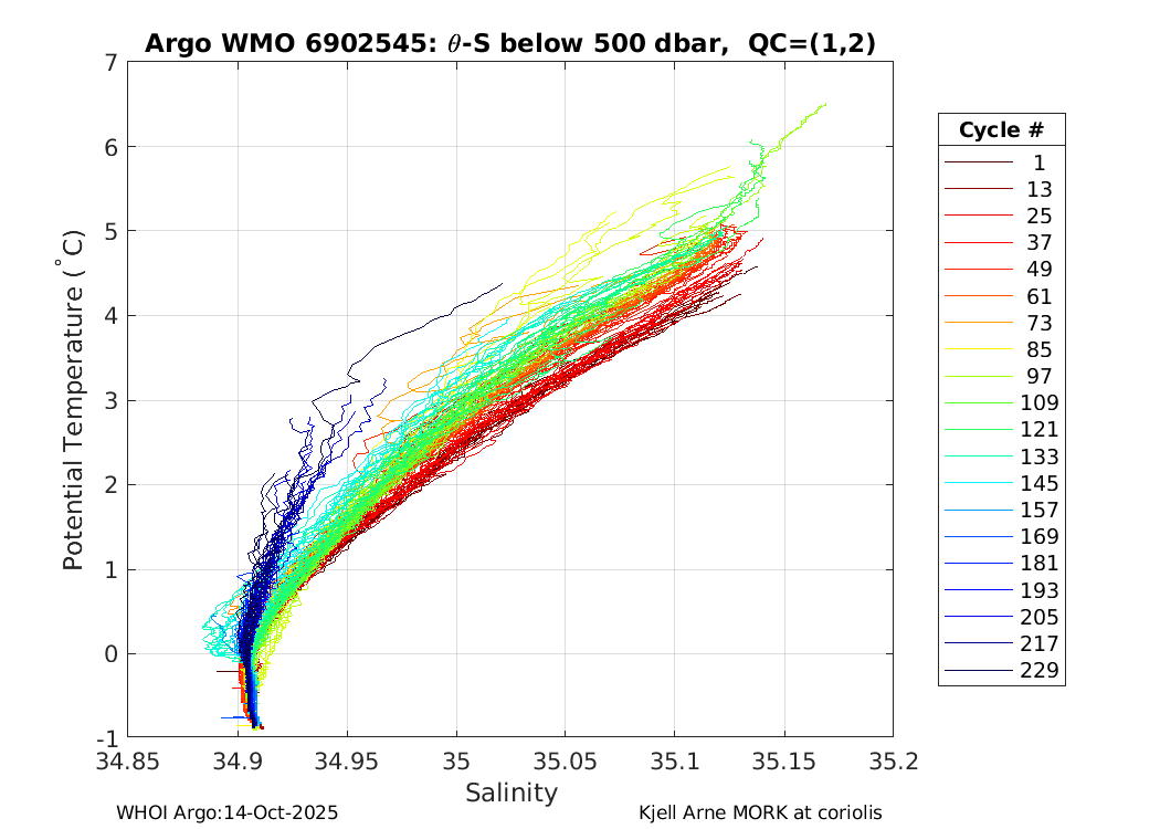 | WMO: #4901701 DAC: aoml PI: BRECK OWENS, STEVEN JAYNE, P.E. ROBBINS S2-A: #7247 SBE41CP: #4903 DRUCK_2900PSIA: #3585754 Altimeter Comparison (IFREMER) EuroArgo Link | ![]() |