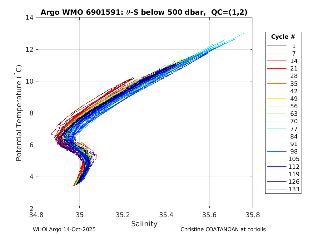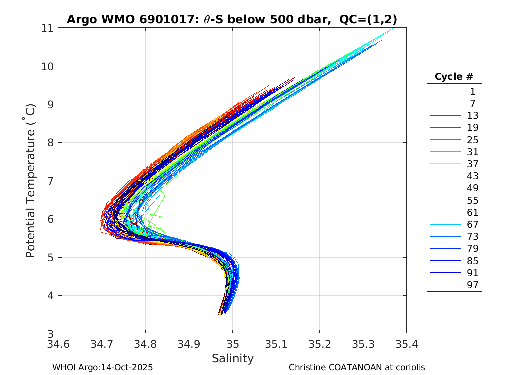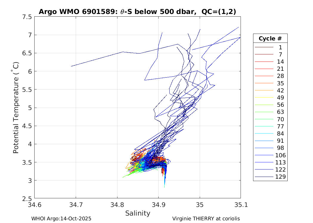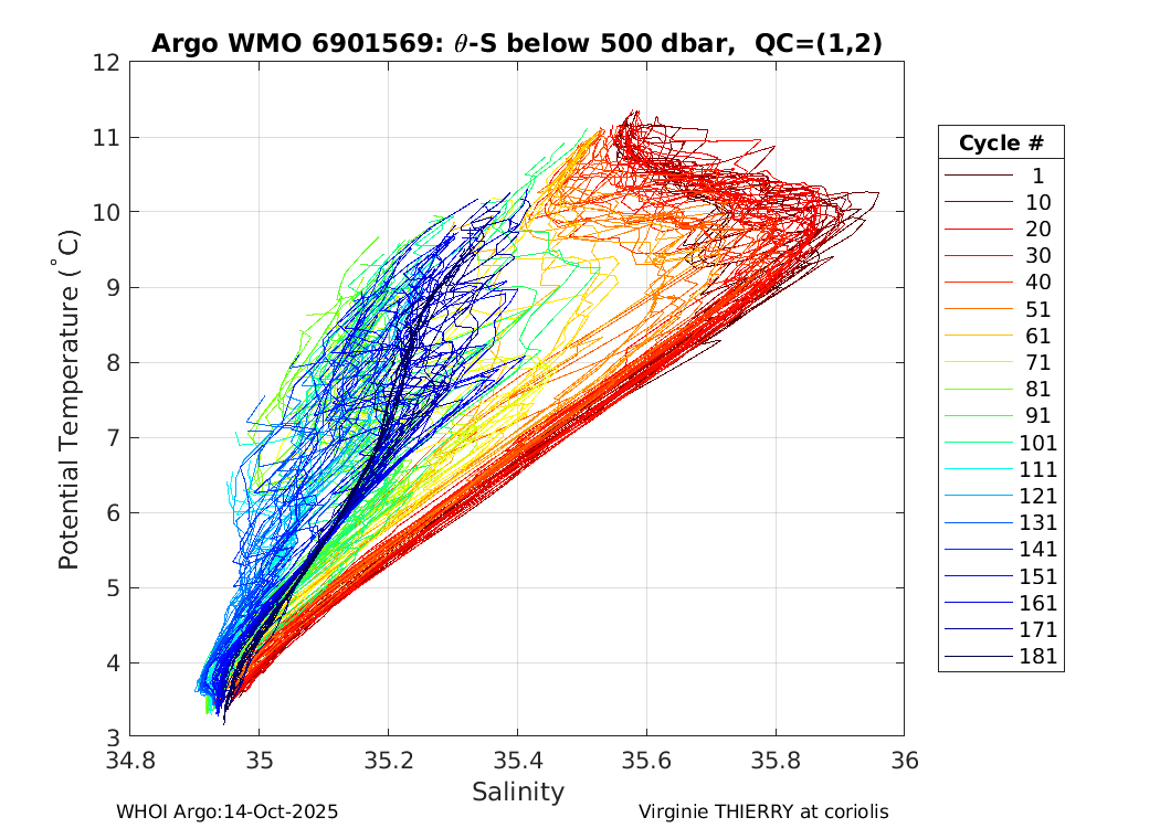 | WMO: #4901701 DAC: aoml PI: BRECK OWENS, STEVEN JAYNE, P.E. ROBBINS S2-A: #7247 SBE41CP: #4903 DRUCK_2900PSIA: #3585754 Altimeter Comparison (IFREMER) EuroArgo Link | ![]() |