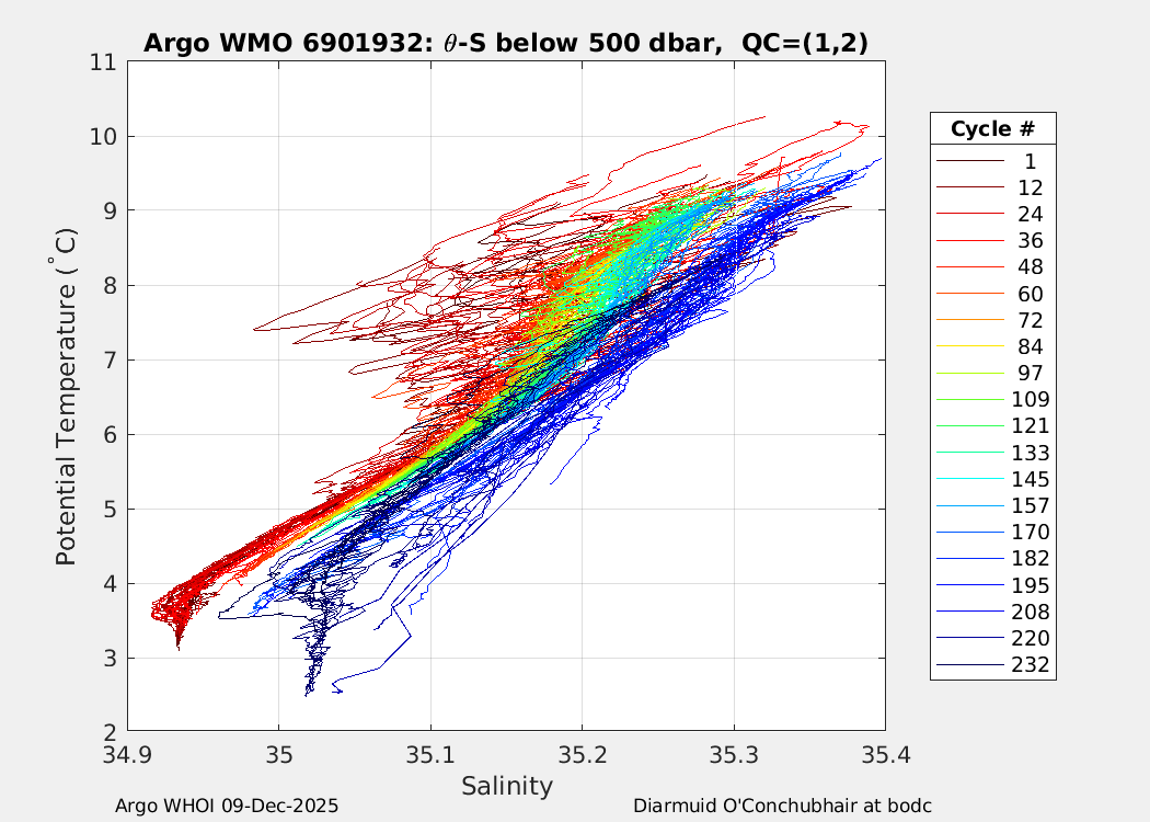 | WMO: #6901932 DAC: bodc PI: Diarmuid O'Conchubhair ARVOR: # FLOATCLOCK: # DRUCK_2900PSIA: #10717931 SBE41CP: #10060 Altimeter Comparison (IFREMER) EuroArgo Link | ![]() |