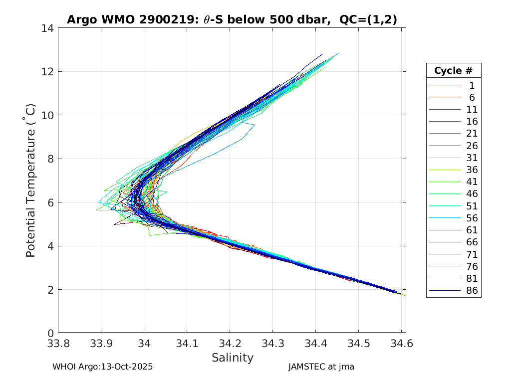 | WMO: #5900269 DAC: jma PI: JAMSTEC APEX: #690 AMETEK: #2657730093 SBE41: #0744 Altimeter Comparison (IFREMER) EuroArgo Link | ![]() |