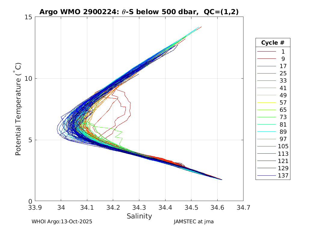 | WMO: #2900224 DAC: jma PI: JAMSTEC APEX: #686 AMETEK: #2657720258 SBE41: #0702 Altimeter Comparison (IFREMER) EuroArgo Link | ![]() |