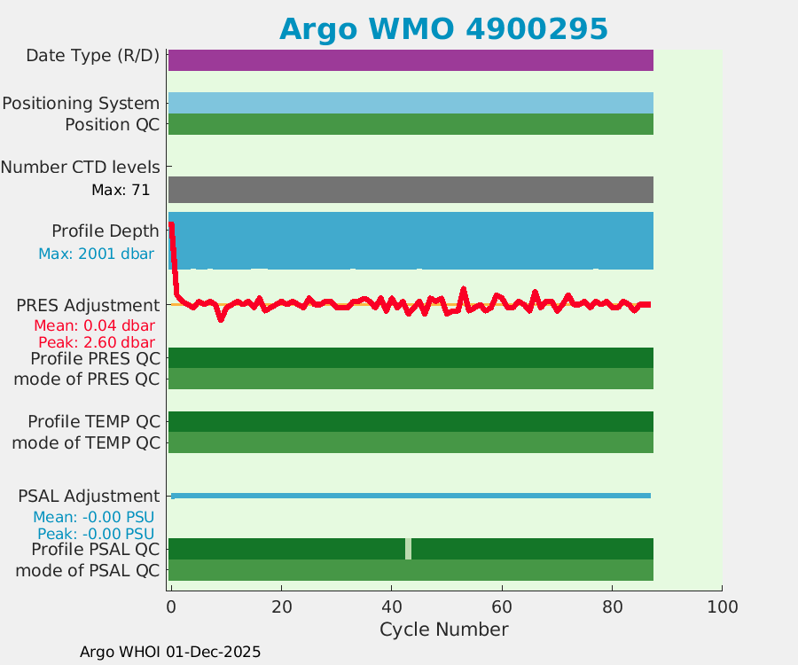 | WMO: #4900295 DAC: jma PI: JAMSTEC PROVOR: # AMETEK: #2657718063 SBE41CP: #0236 Altimeter Comparison (IFREMER) EuroArgo Link | ![]() |