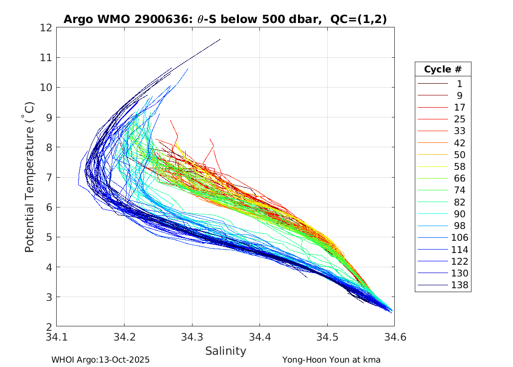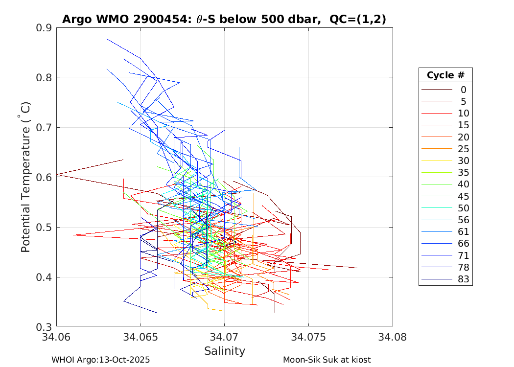 | WMO: #2900791 DAC: kiost PI: Moon-Sik Suk APEX: #2866 DRUCK: #10470 SBE: #3068 AANDERAA_OPTODE_3830: #696 Altimeter Comparison (IFREMER) EuroArgo Link | n/a | n/a | ![]() |