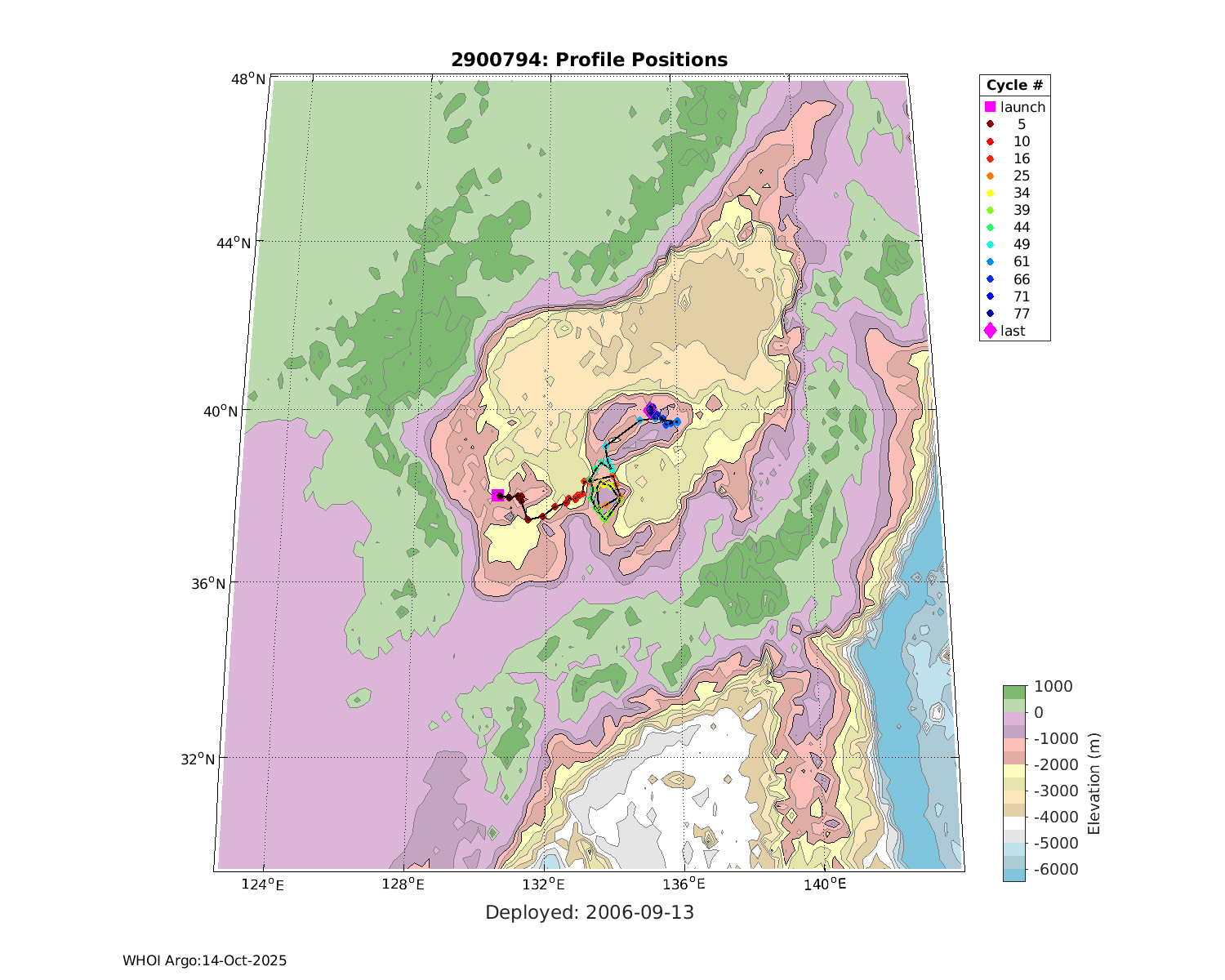 | WMO: #2900657 DAC: jma PI: JMA APEX: #2975 DRUCK: #2328590 SBE41: #3053 Altimeter Comparison (IFREMER) EuroArgo Link | ![]() |