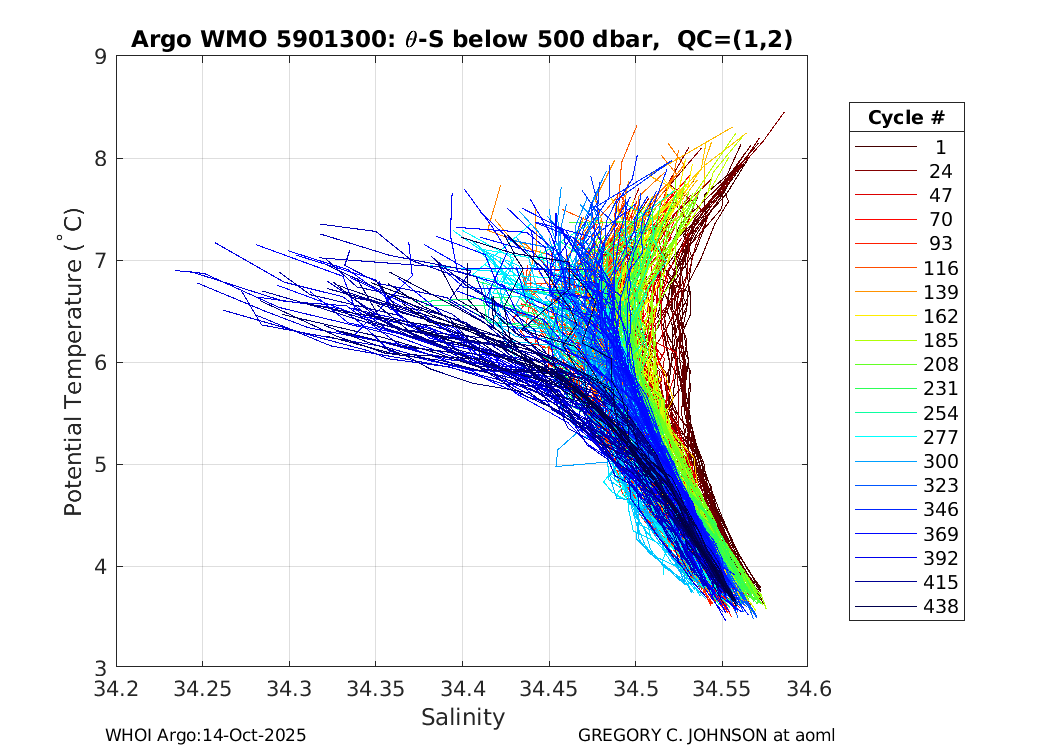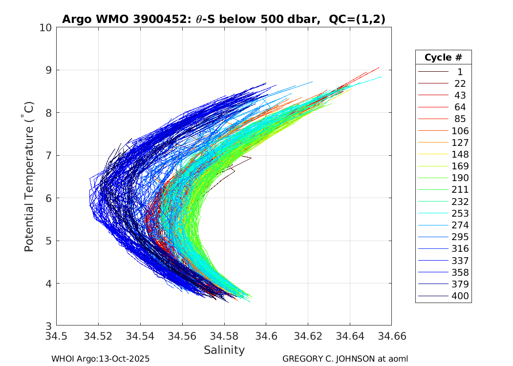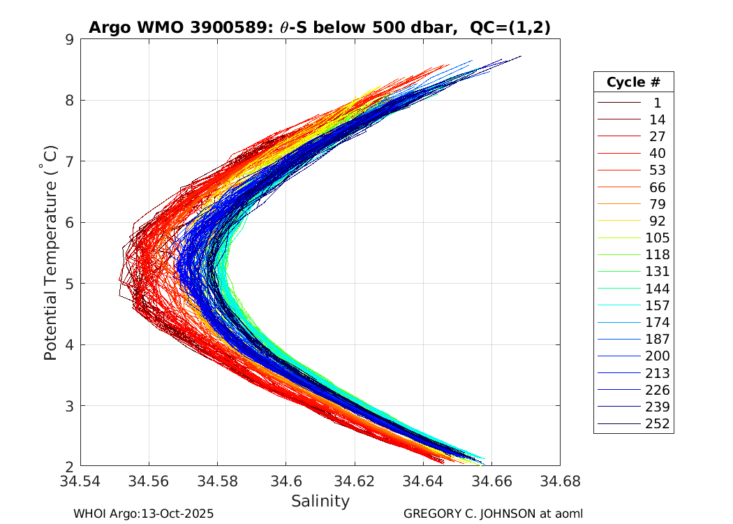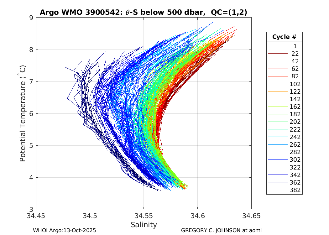 | WMO: #4900659 DAC: aoml PI: GREGORY C. JOHNSON APEX: #2579 SBE41: #2612 DRUCK_2900PSIA: #9091 Altimeter Comparison (IFREMER) EuroArgo Link | ![]() |