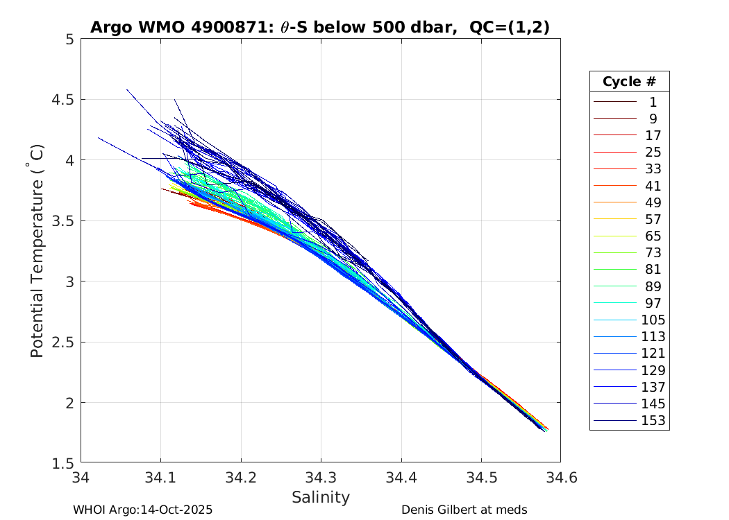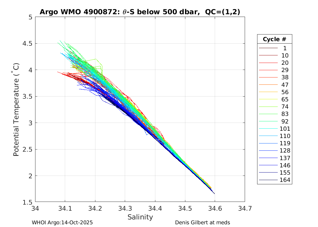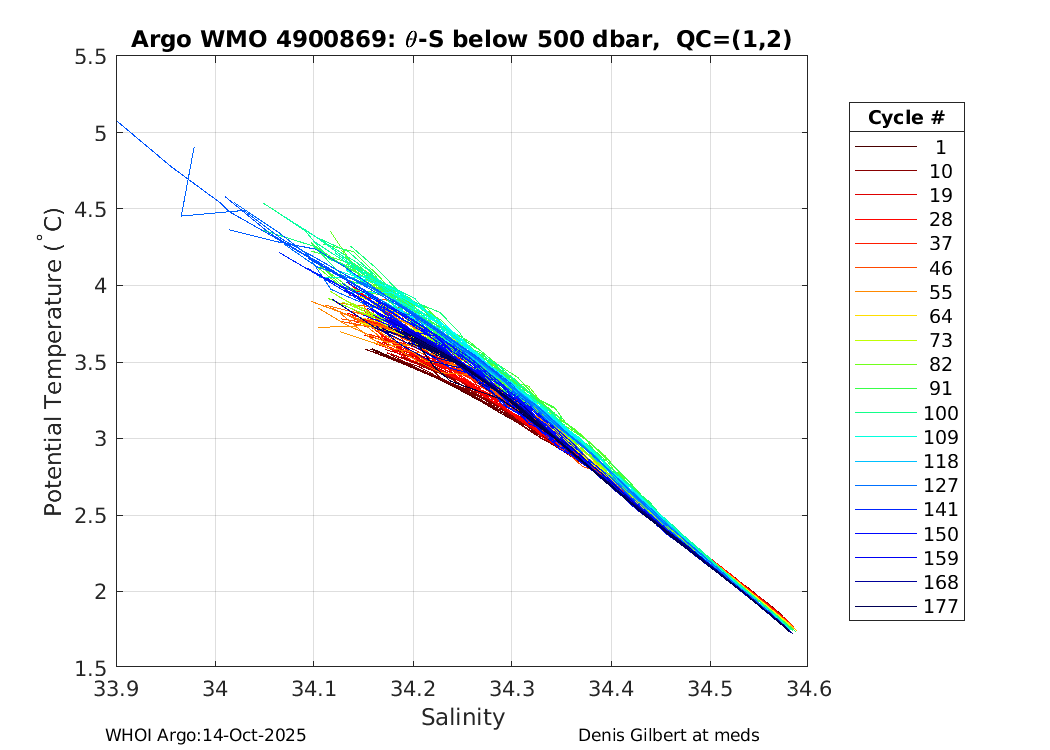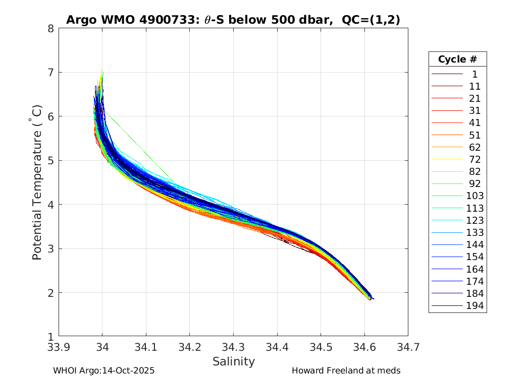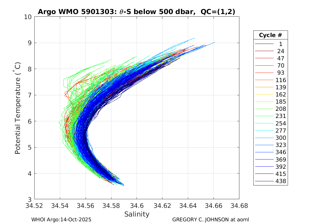 | WMO: #4900659 DAC: aoml PI: GREGORY C. JOHNSON APEX: #2579 SBE41: #2612 DRUCK_2900PSIA: #9091 Altimeter Comparison (IFREMER) EuroArgo Link | ![]() |