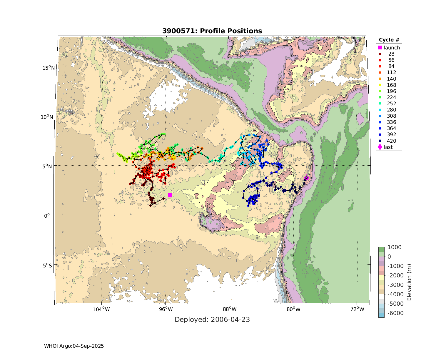 | WMO: #4900889 DAC: jma PI: JAMSTEC APEX: #2425 DRUCK: #8539 SBE41: #2503 Altimeter Comparison (IFREMER) EuroArgo Link | ![]() |