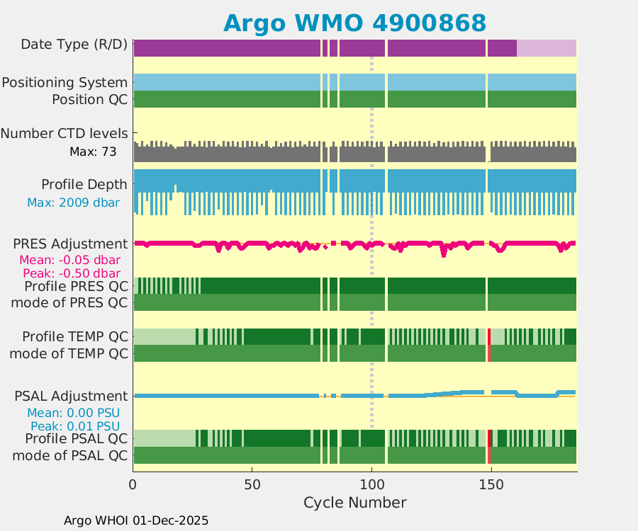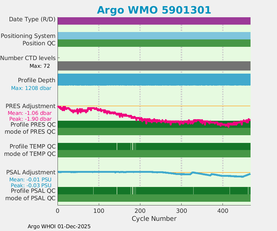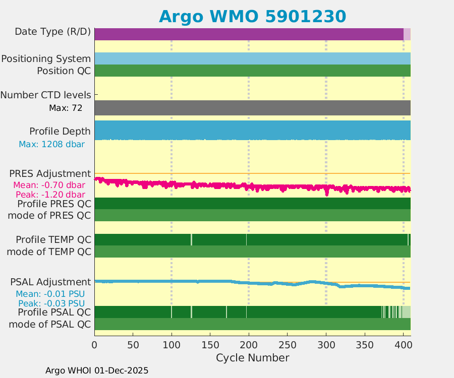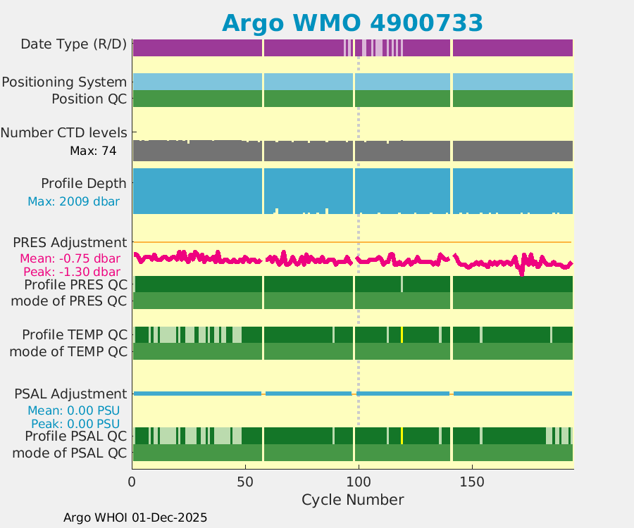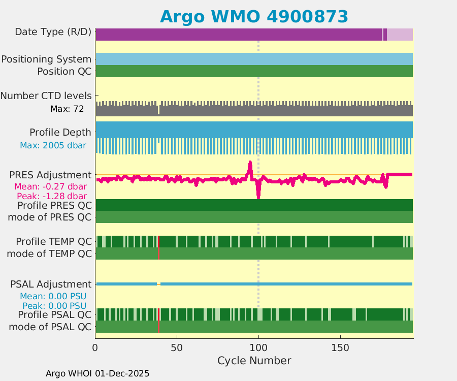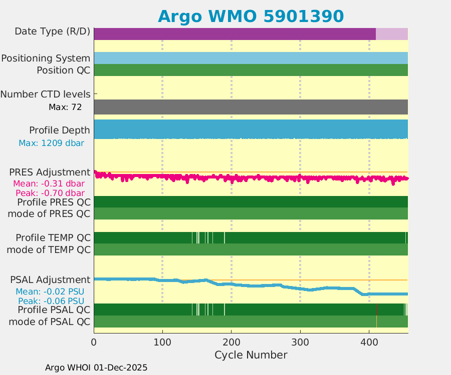 | WMO: #4900901 DAC: jma PI: JAMSTEC APEX: #2420 DRUCK: #8433 SBE41: #2494 Altimeter Comparison (IFREMER) EuroArgo Link | ![]() |