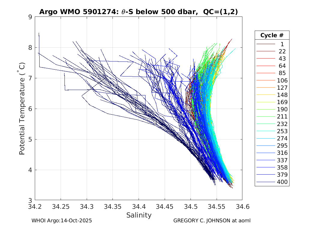 | WMO: #5901274 DAC: aoml PI: GREGORY C. JOHNSON APEX: #2575 SBE41: #2605 DRUCK_2900PSIA: #9084 Altimeter Comparison (IFREMER) EuroArgo Link | ![]() |