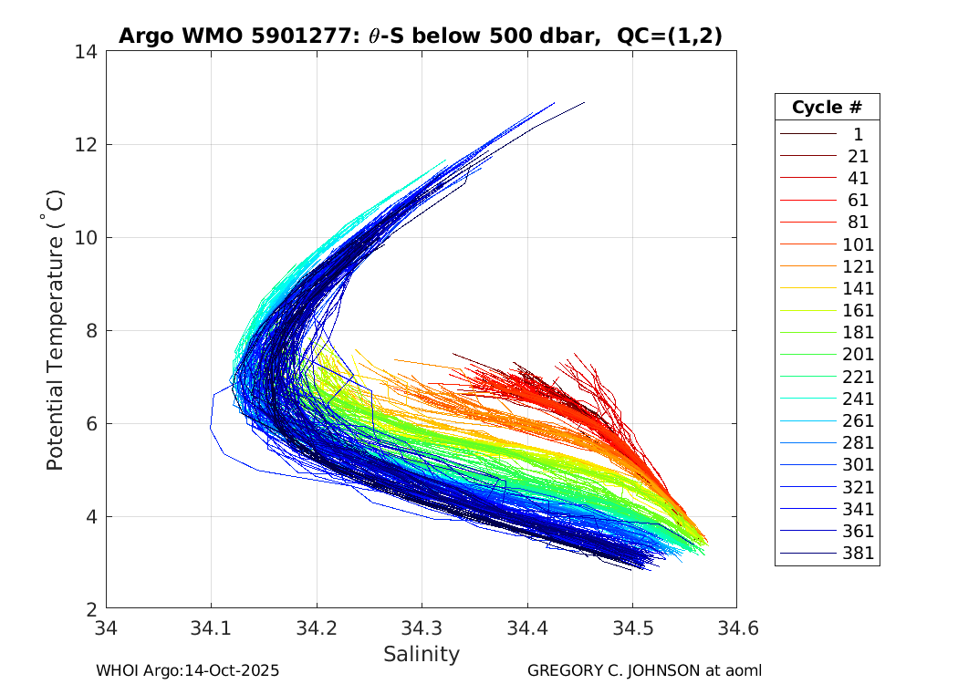 | WMO: #5901300 DAC: aoml PI: GREGORY C. JOHNSON APEX: #2577 SBE41: #2609 DRUCK_2900PSIA: #10484 Altimeter Comparison (IFREMER) EuroArgo Link | ![]() |