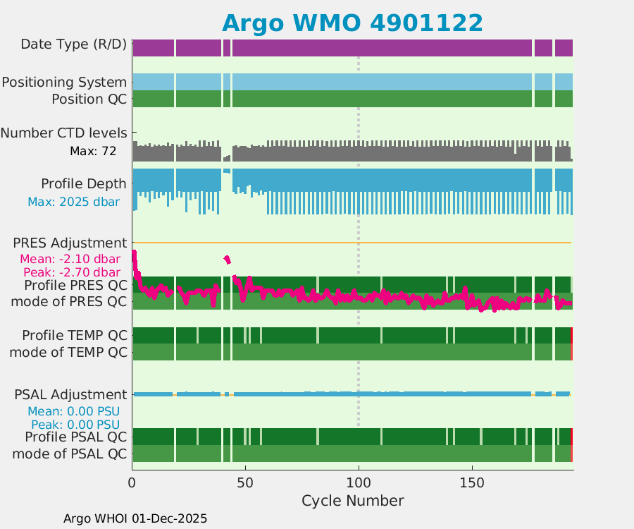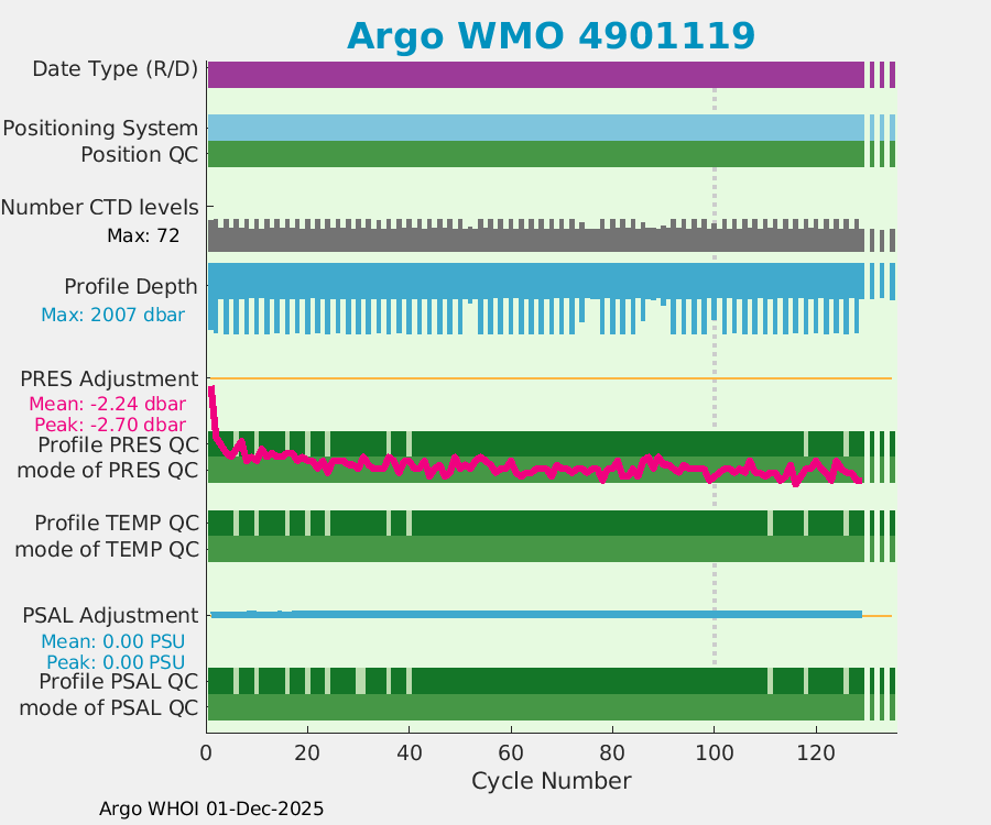 | WMO: #2900966 DAC: jma PI: JAMSTEC APEX: #4230 DRUCK: #2711822 SBE41: #4223 Altimeter Comparison (IFREMER) EuroArgo Link | ![]() |