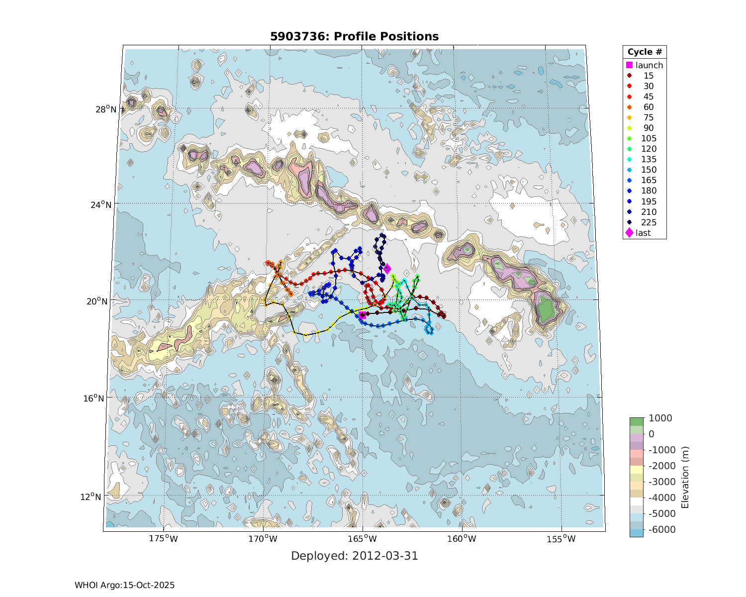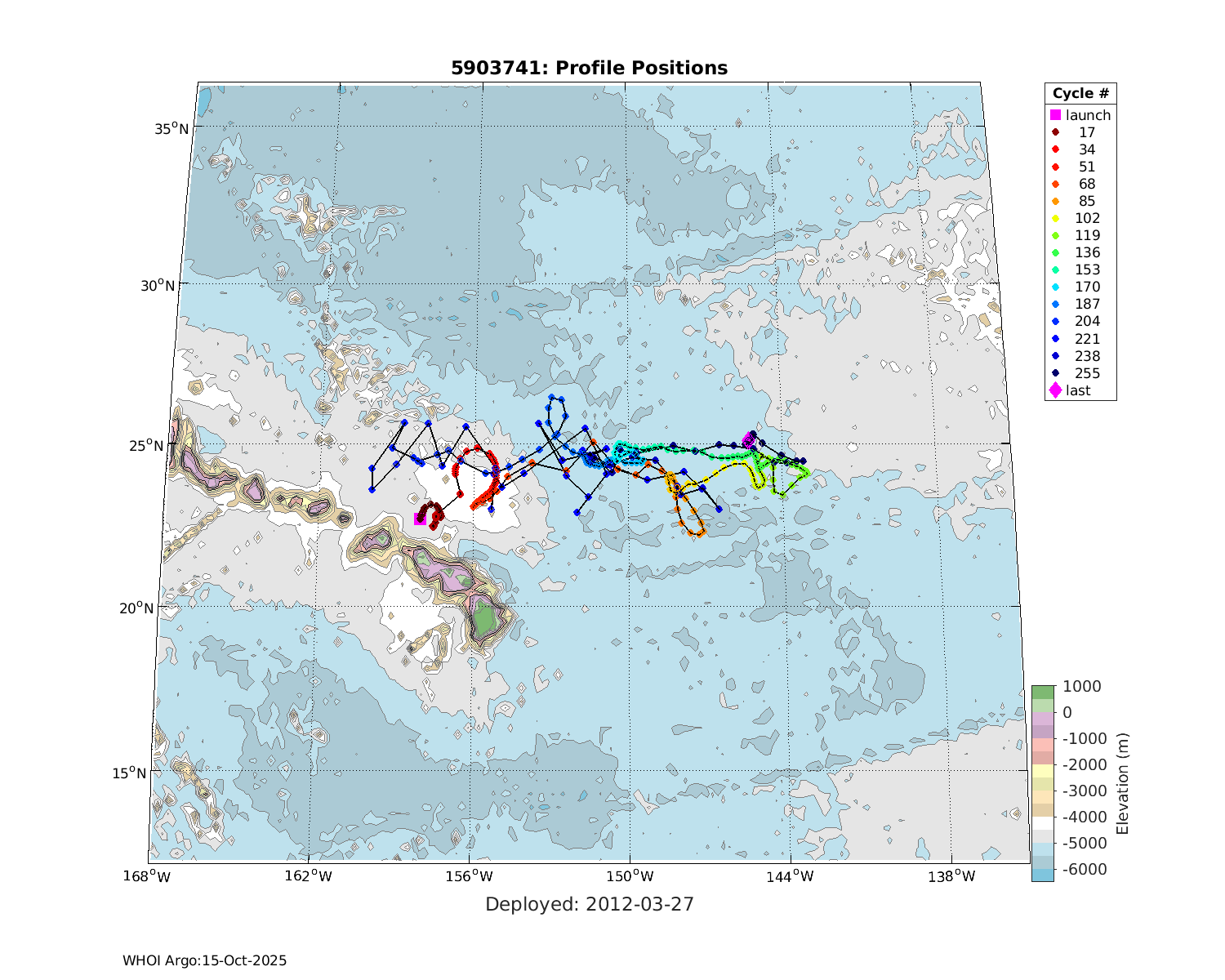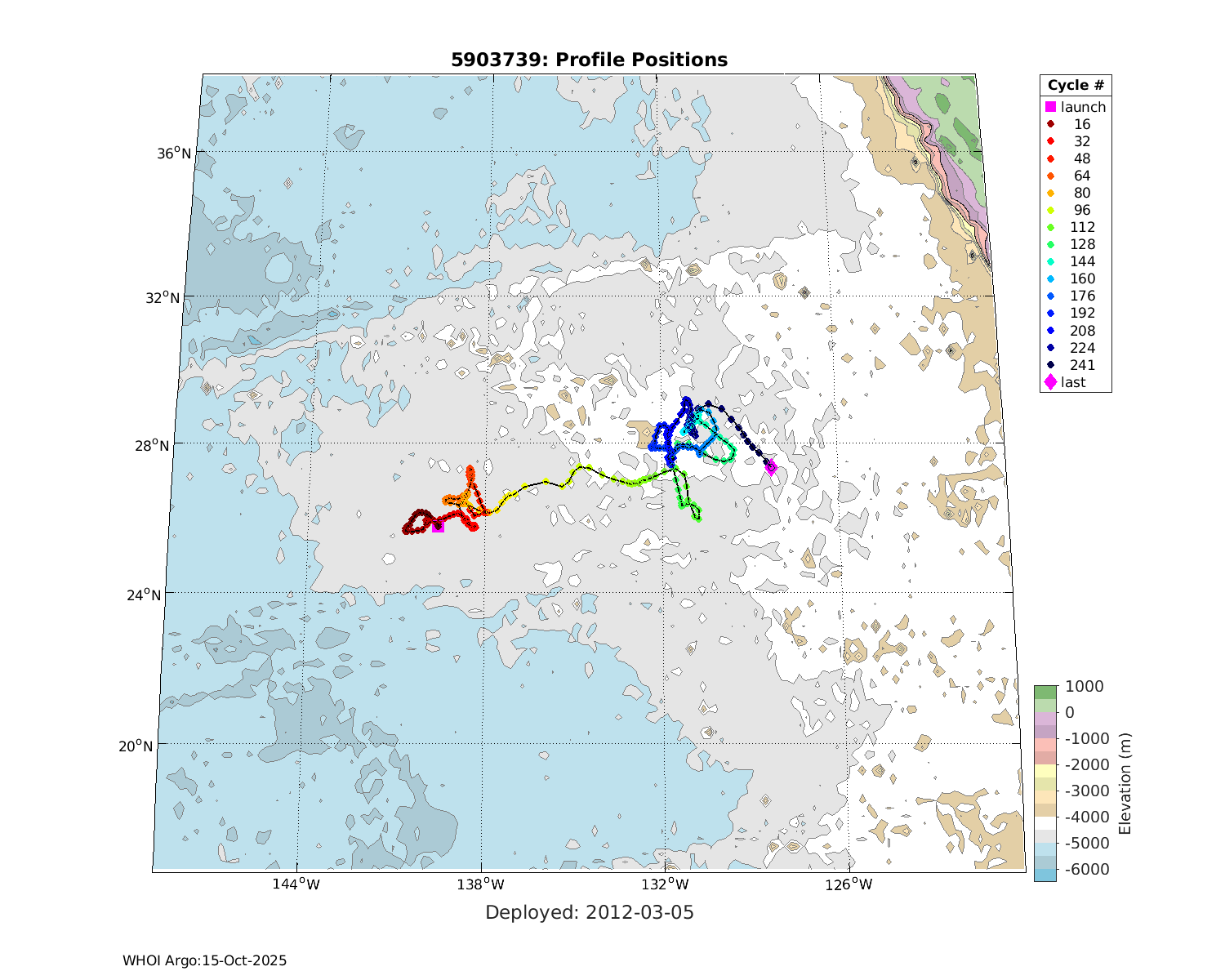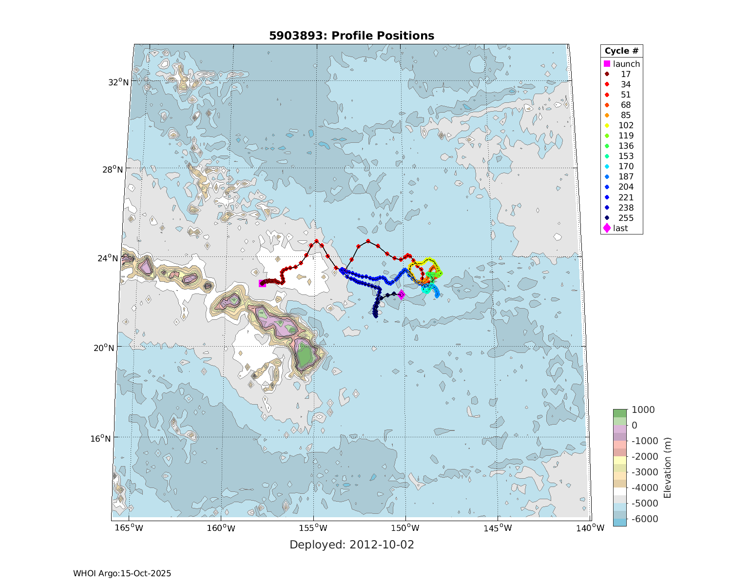 | WMO: #2901516 DAC: csio PI: JIANPING XU APEX: #5688 SBE41: #5376 2900PSIA: #2074335 Altimeter Comparison (IFREMER) EuroArgo Link | ![]() |