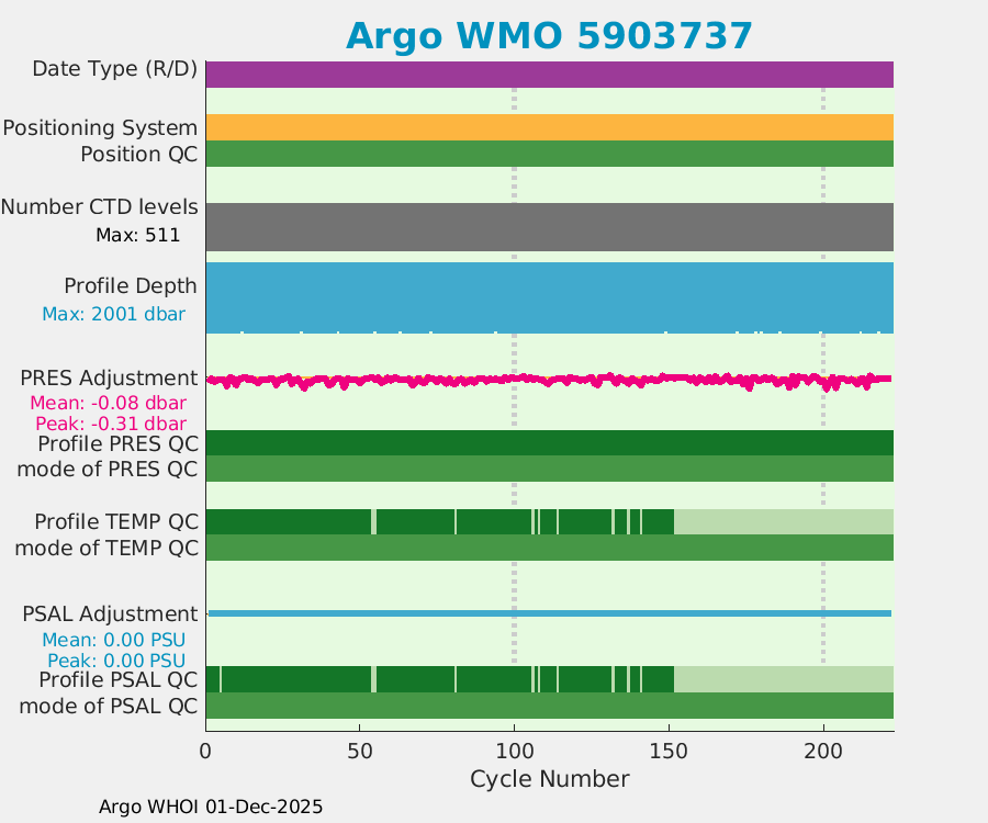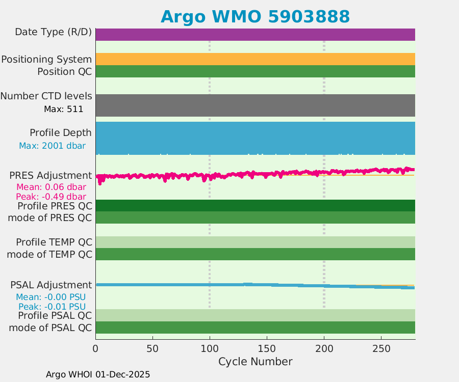 | WMO: #2901659 DAC: jma PI: JAMSTEC PROVOR: #10041 DRUCK: #3216070 SBE41CP_V2: #2973 Altimeter Comparison (IFREMER) EuroArgo Link | ![]() |