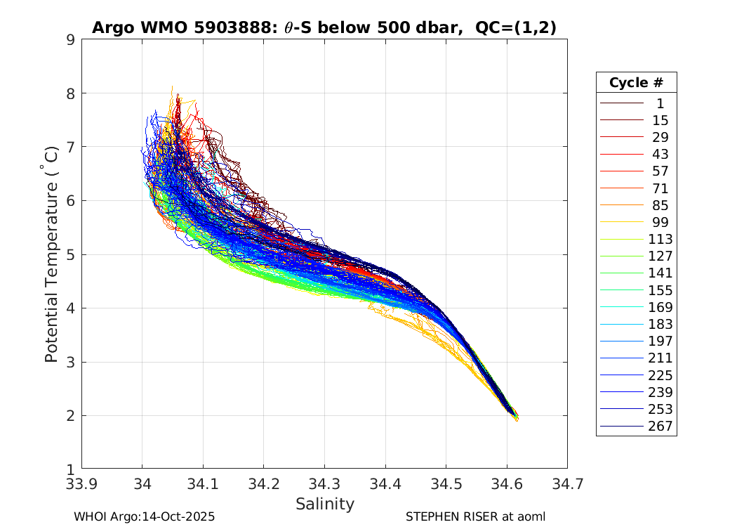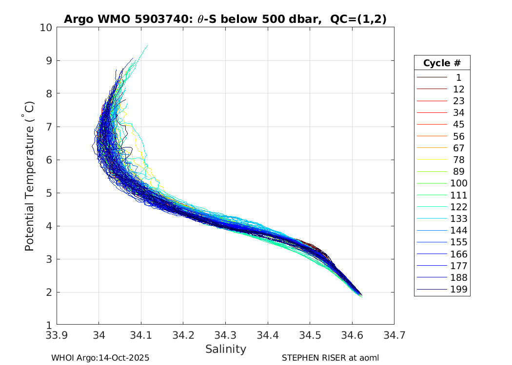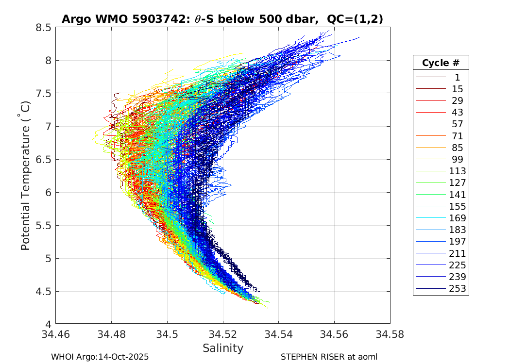 | WMO: #4901491 DAC: aoml PI: GREGORY C. JOHNSON APEX: #5833 SBE41: #5493 DRUCK_2900PSIA: #3255076 Altimeter Comparison (IFREMER) EuroArgo Link | ![]() |