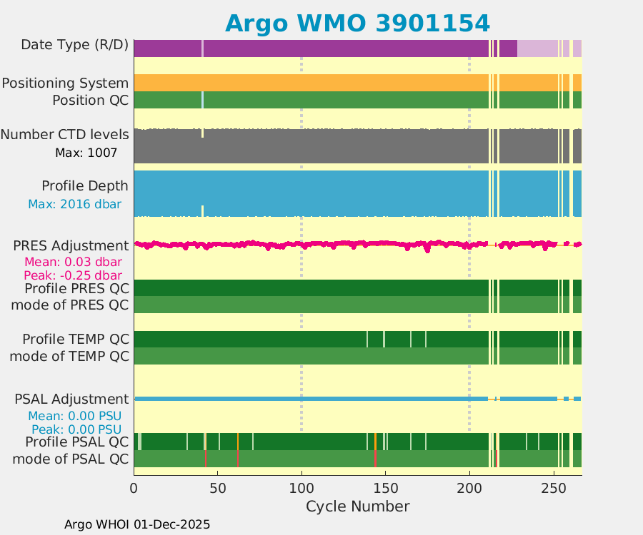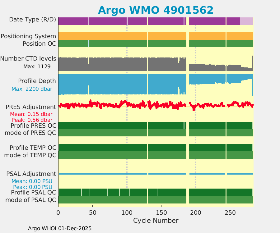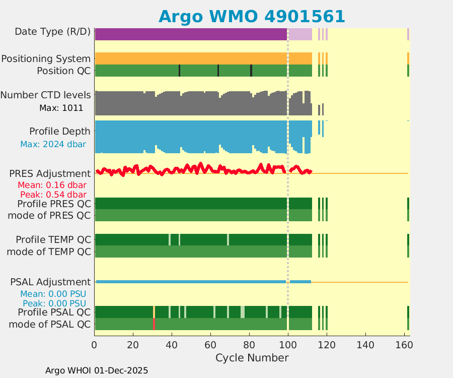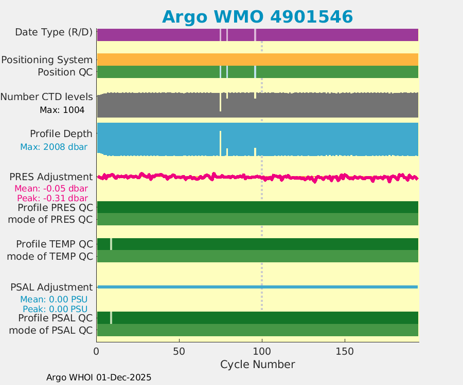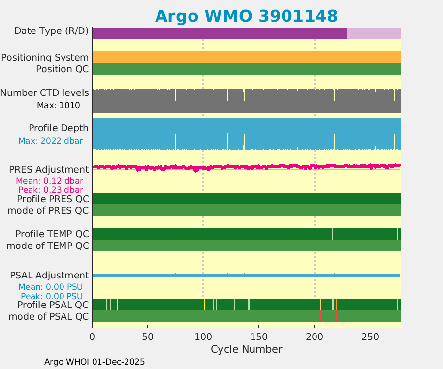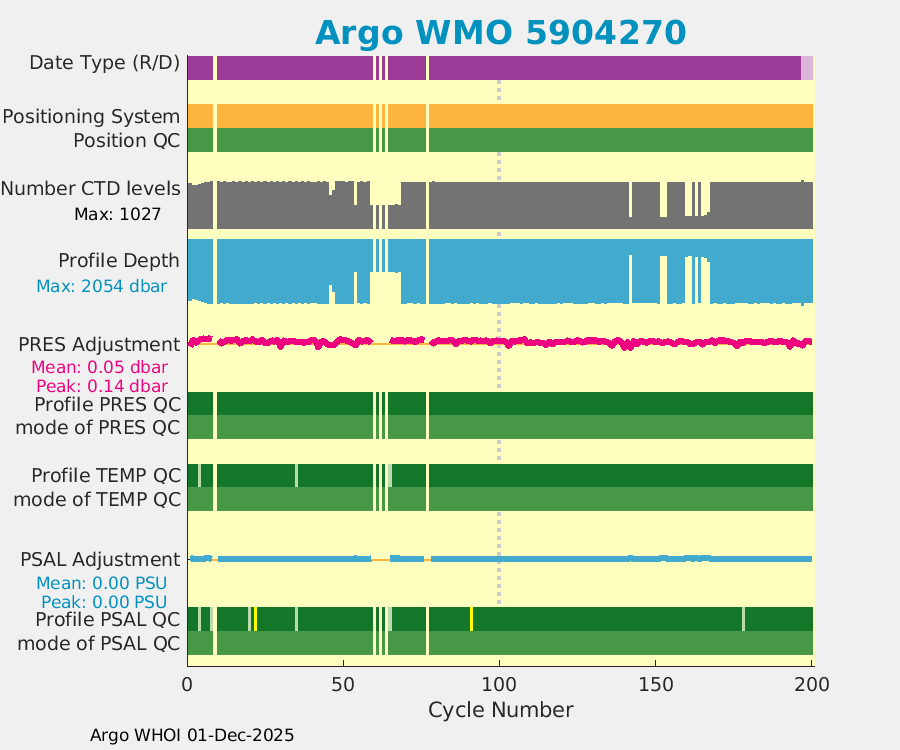 | WMO: #5904091 DAC: aoml PI: STEPHEN RISER APEX: #5380 SBE41CP: #3491 DRUCK_2900PSIA: #3192813 SBE63_OPTODE: #0224 Altimeter Comparison (IFREMER) EuroArgo Link | ![]() |