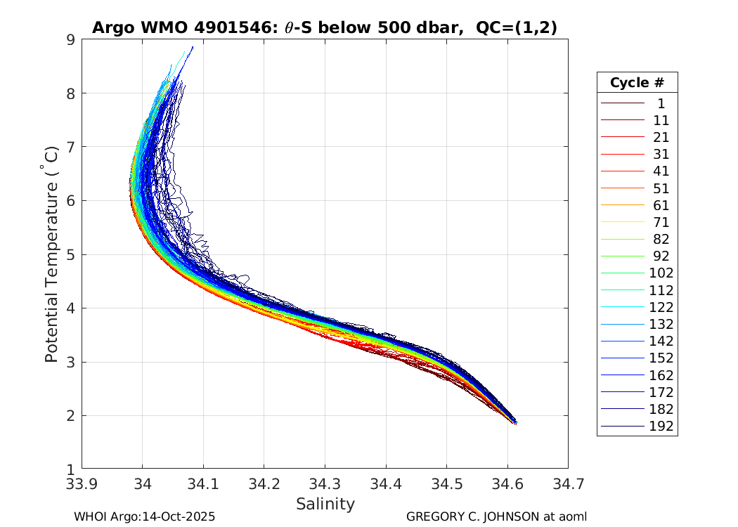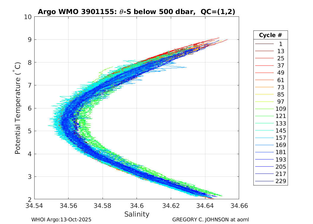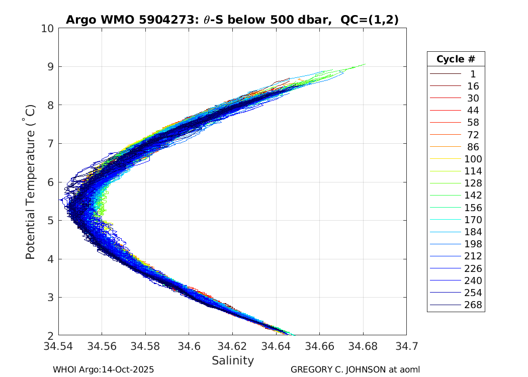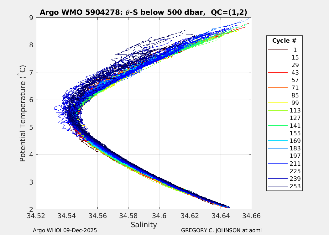 | WMO: #4901546 DAC: aoml PI: GREGORY C. JOHNSON NAVIS_A: #171 SBE41CP: #4231 DRUCK_2900PSIA: #3448339 Altimeter Comparison (IFREMER) EuroArgo Link | ![]() |