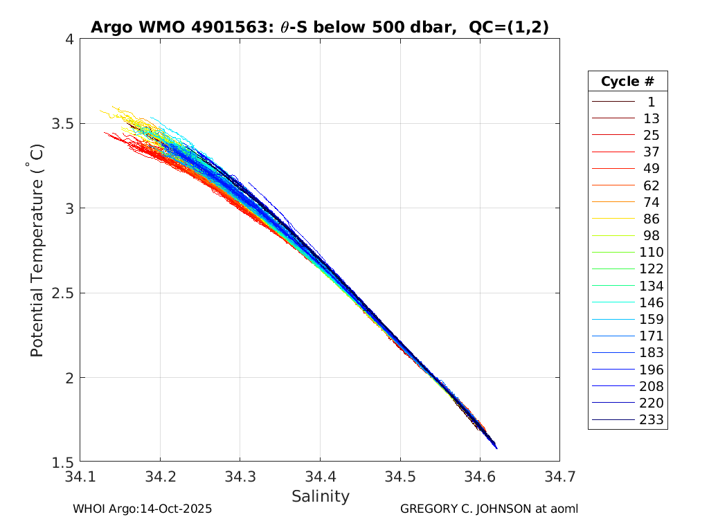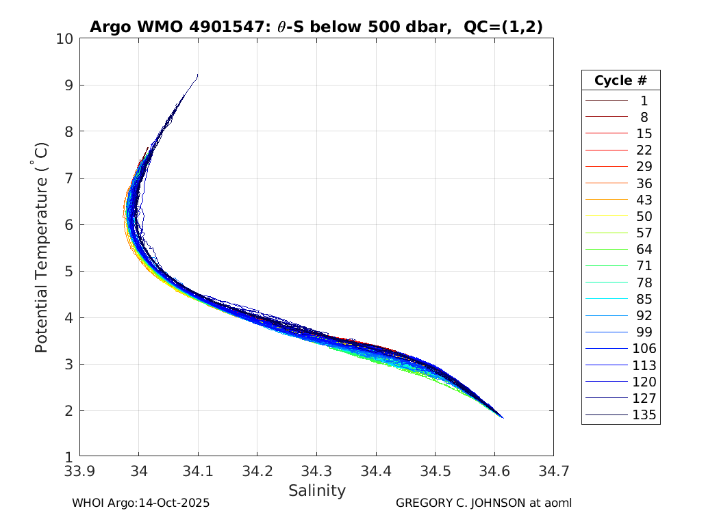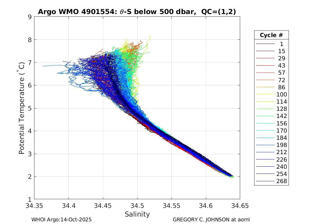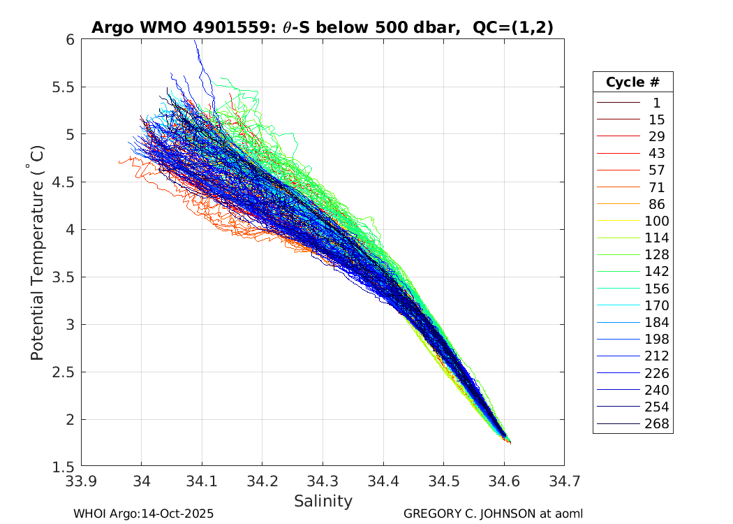 | WMO: #4901546 DAC: aoml PI: GREGORY C. JOHNSON NAVIS_A: #171 SBE41CP: #4231 DRUCK_2900PSIA: #3448339 Altimeter Comparison (IFREMER) EuroArgo Link | ![]() |