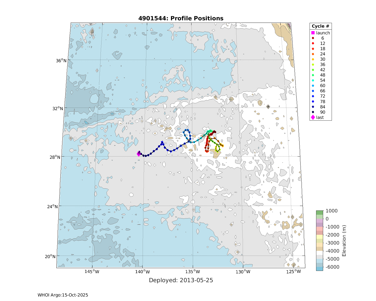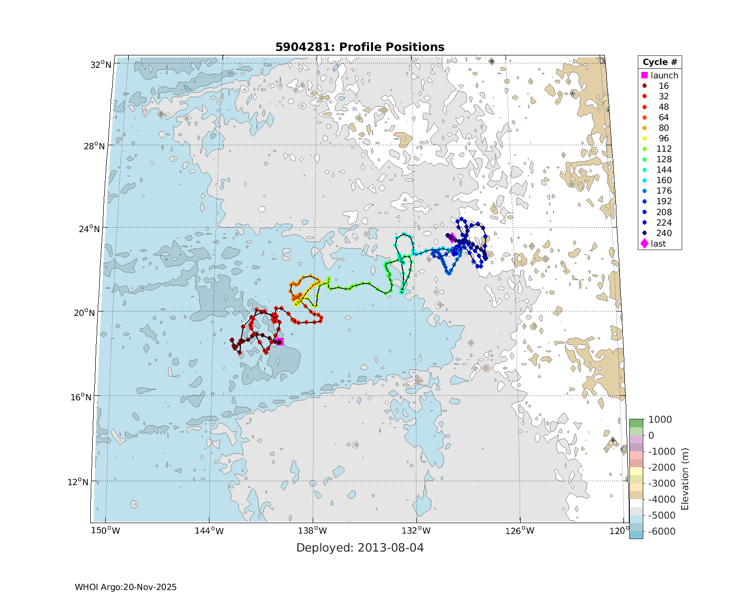 | WMO: #2901524 DAC: csio PI: JIANPING XU APEX: #5696 SBE41: #5399 2900PSIA: #2074766 Altimeter Comparison (IFREMER) EuroArgo Link | ![]() |