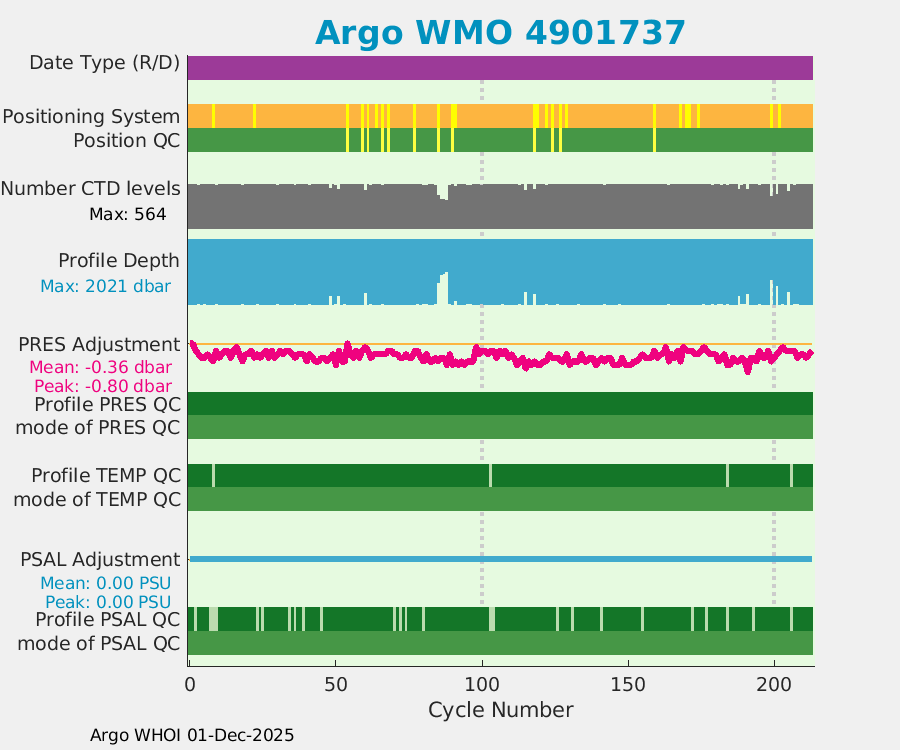 | WMO: #4901696 DAC: jma PI: JAMSTEC ARVOR: # KISTLER: #2114835 SBE41CP_V2: #4581 Altimeter Comparison (IFREMER) EuroArgo Link | ![]() |