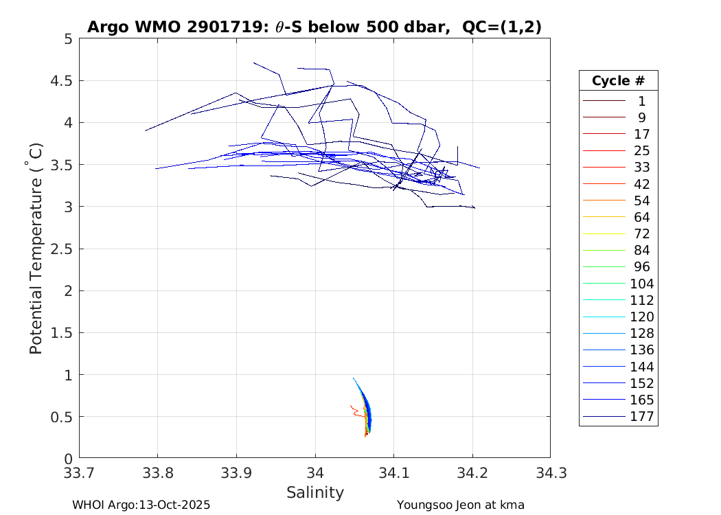 | WMO: #4902141 DAC: jma PI: JAMSTEC NAVIS_A: #359 DRUCK: #3846656 SBE41CP_V2: #5638 Altimeter Comparison (IFREMER) EuroArgo Link | ![]() |