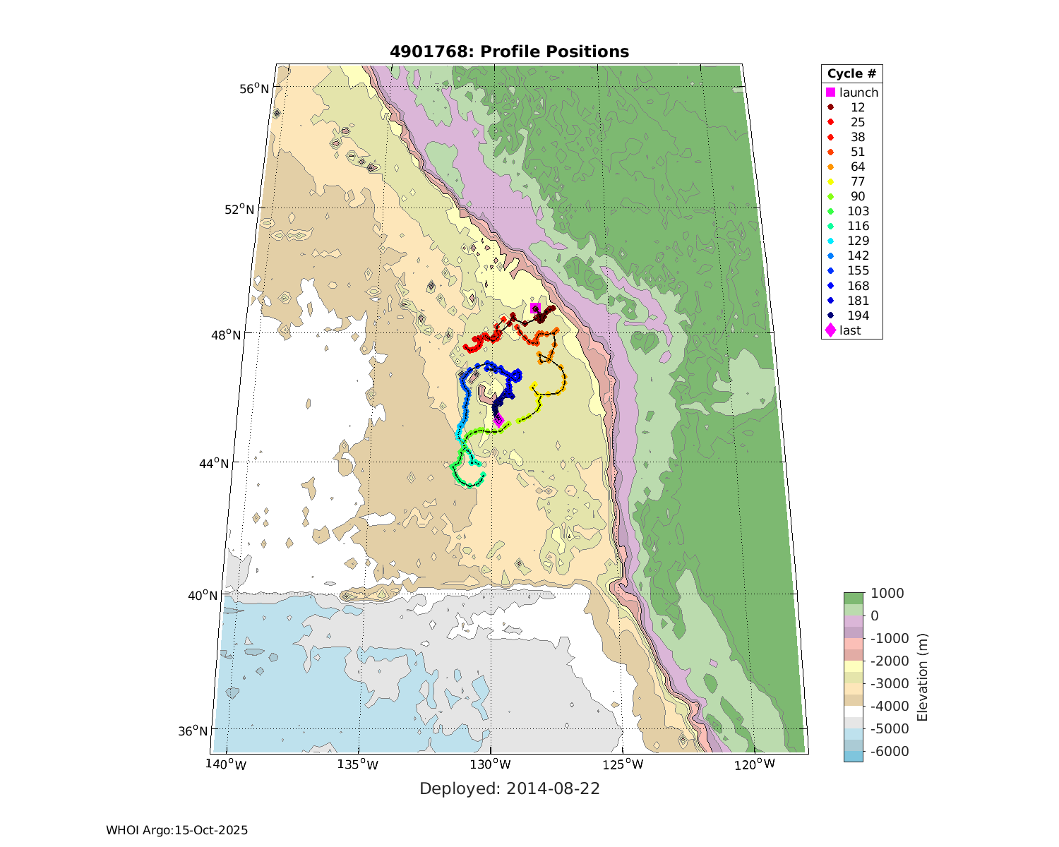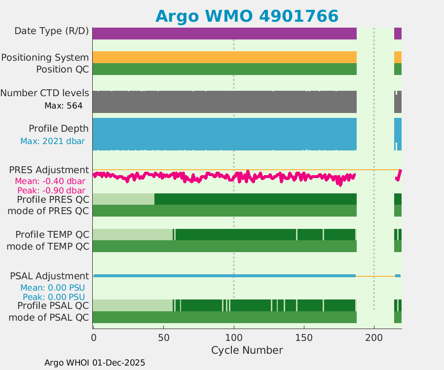 | WMO: #2901547 DAC: csio PI: JIANPING XU APEX: #6572 SBE41: #6084 2900PSIA: #3614125 Altimeter Comparison (IFREMER) EuroArgo Link | ![]() |