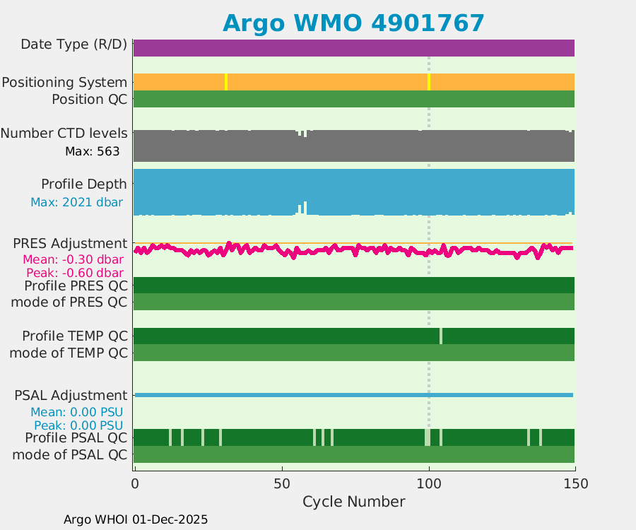 | WMO: #2902523 DAC: jma PI: JAMSTEC NAVIS_A: #385 DRUCK: #3883902 SBE41CP_V2: #5937 Altimeter Comparison (IFREMER) EuroArgo Link | ![]() |