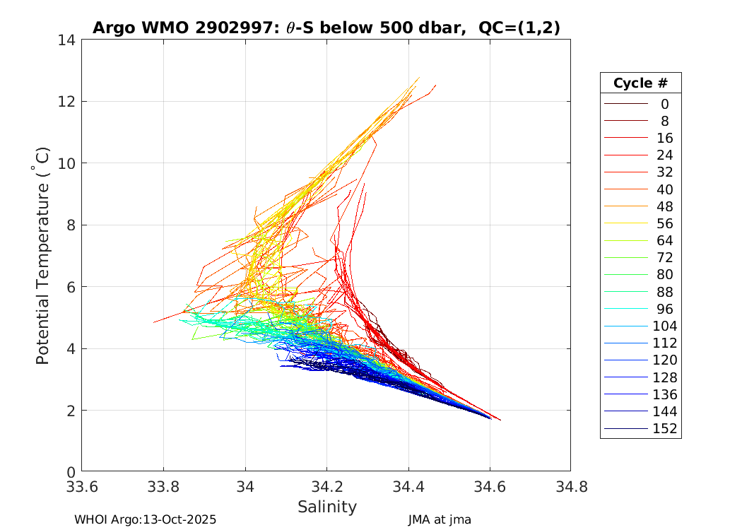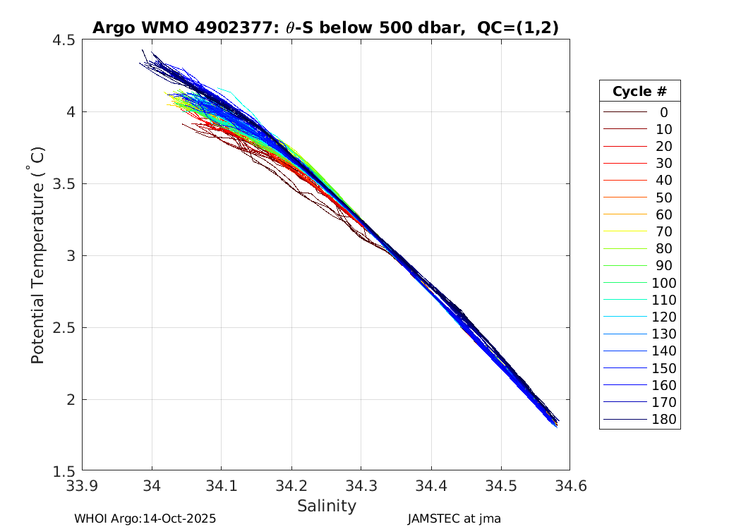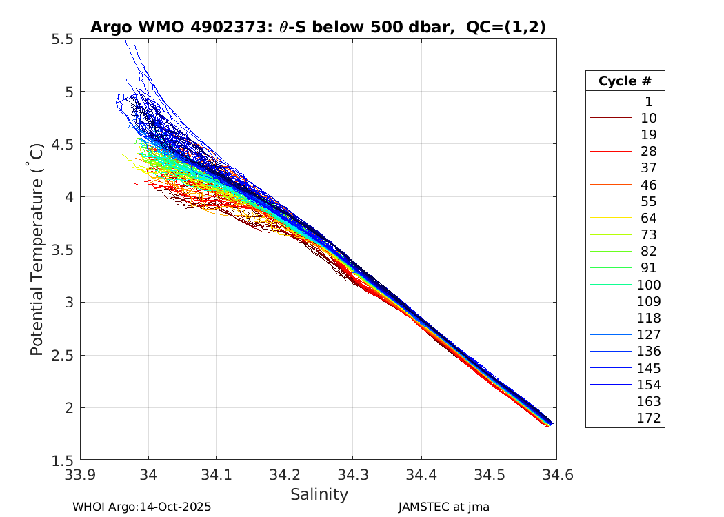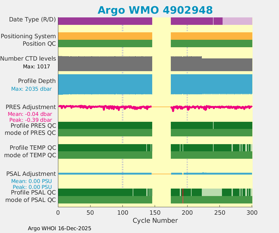 | WMO: #4902373 DAC: jma PI: JAMSTEC APEX: #7848 KISTLER: #4780020 SBE41CP_V7.2.5: #8329 Altimeter Comparison (IFREMER) EuroArgo Link | ![]() |