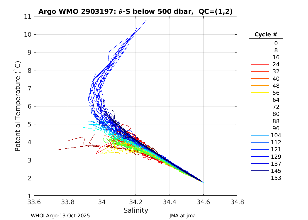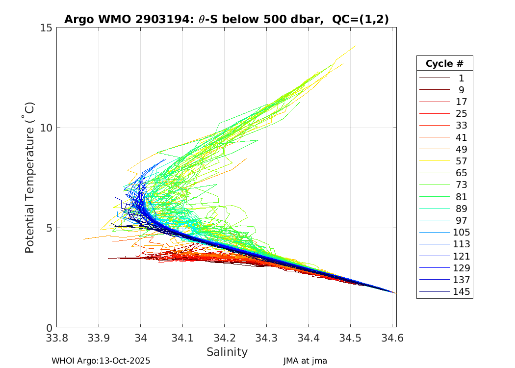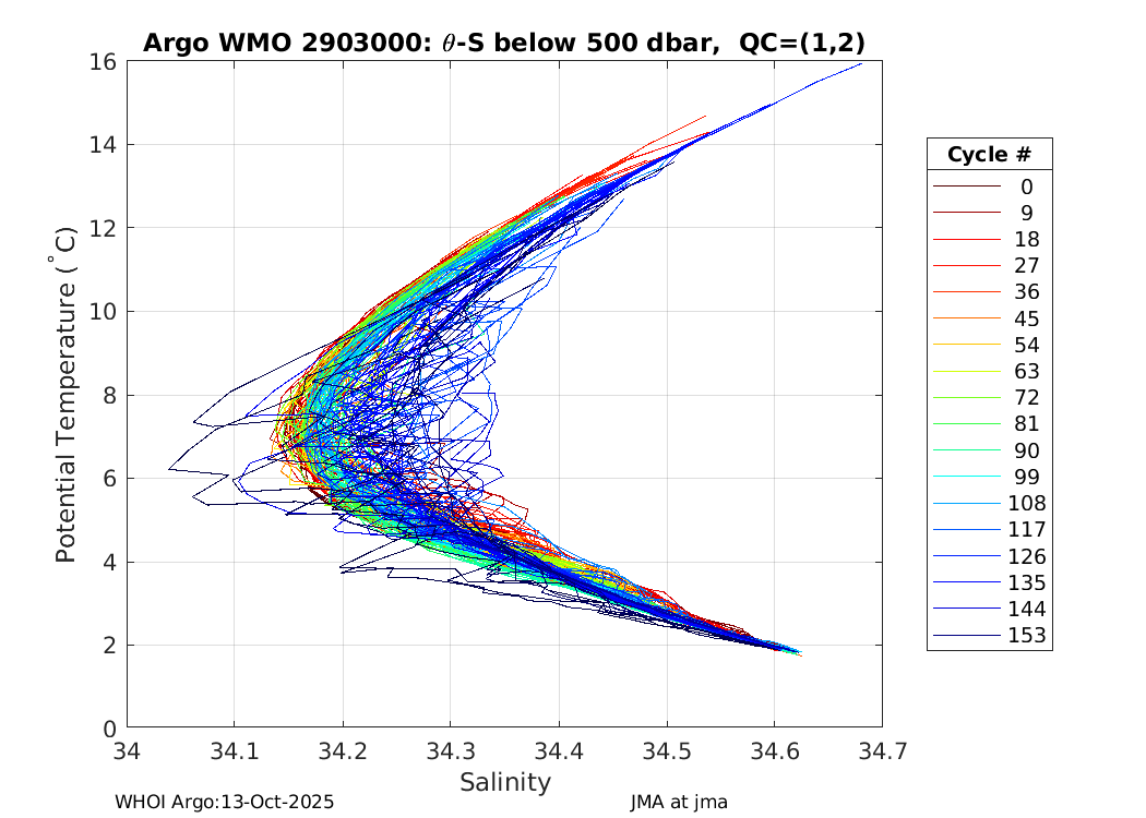 | WMO: #2903206 DAC: jma PI: JAMSTEC NAVIS_A: #673 KISTLER: #4708575 SBE41CP_V7.2.5: #8087 Altimeter Comparison (IFREMER) EuroArgo Link | ![]() |