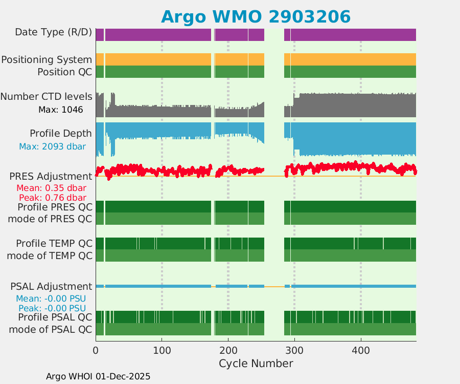 | WMO: #5905358 DAC: aoml PI: STEPHEN RISER APEX: #7926 SBE41CP: #8873 DRUCK_2900PSIA: #10391804 Altimeter Comparison (IFREMER) EuroArgo Link | ![]() |