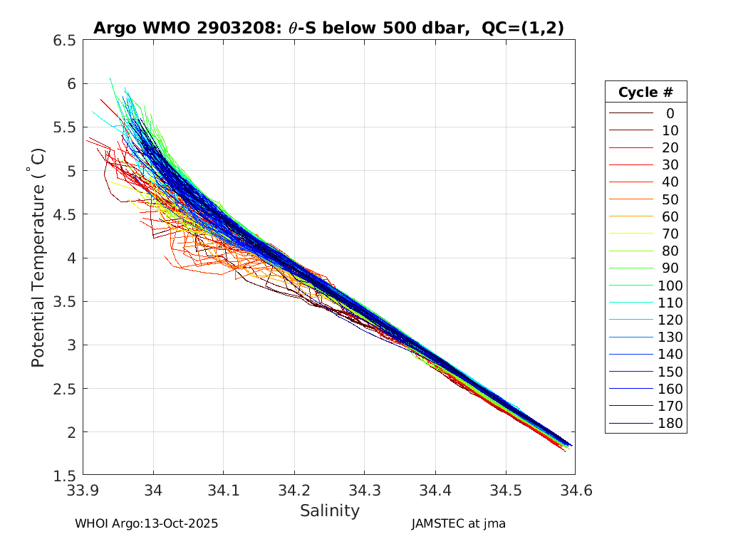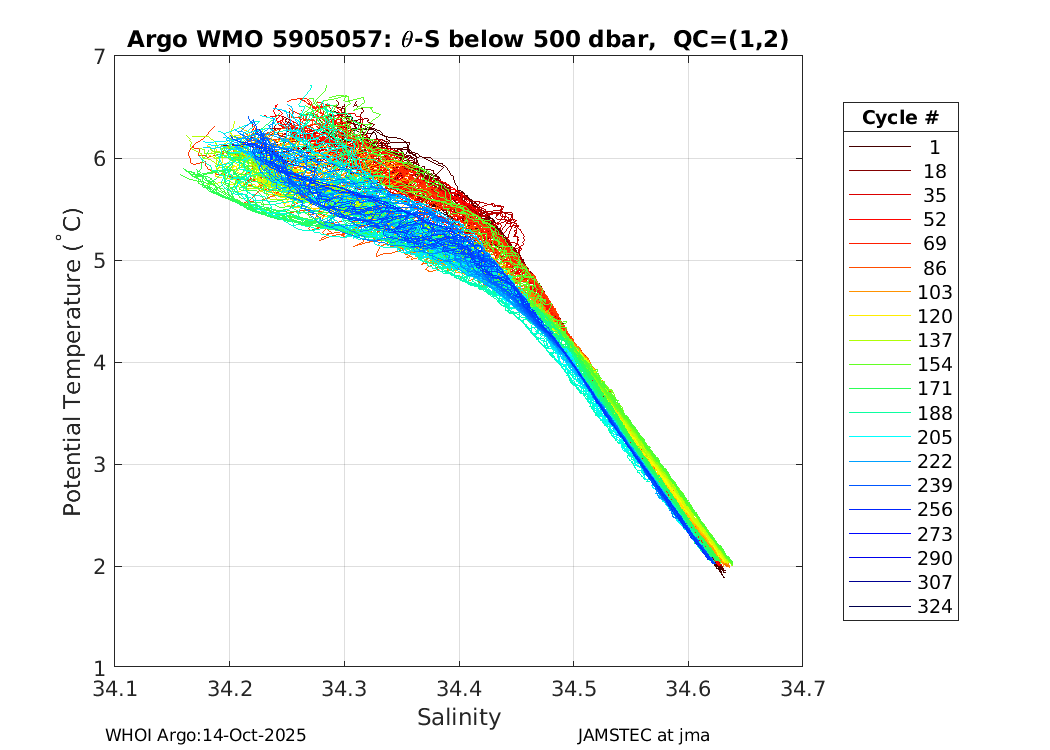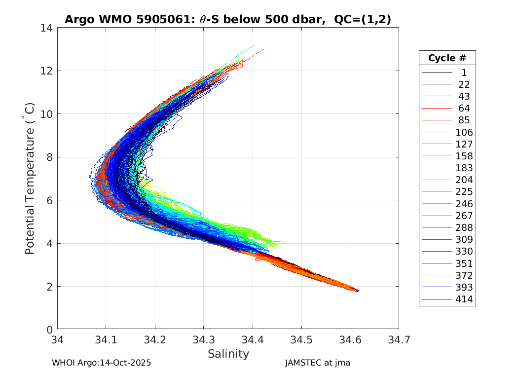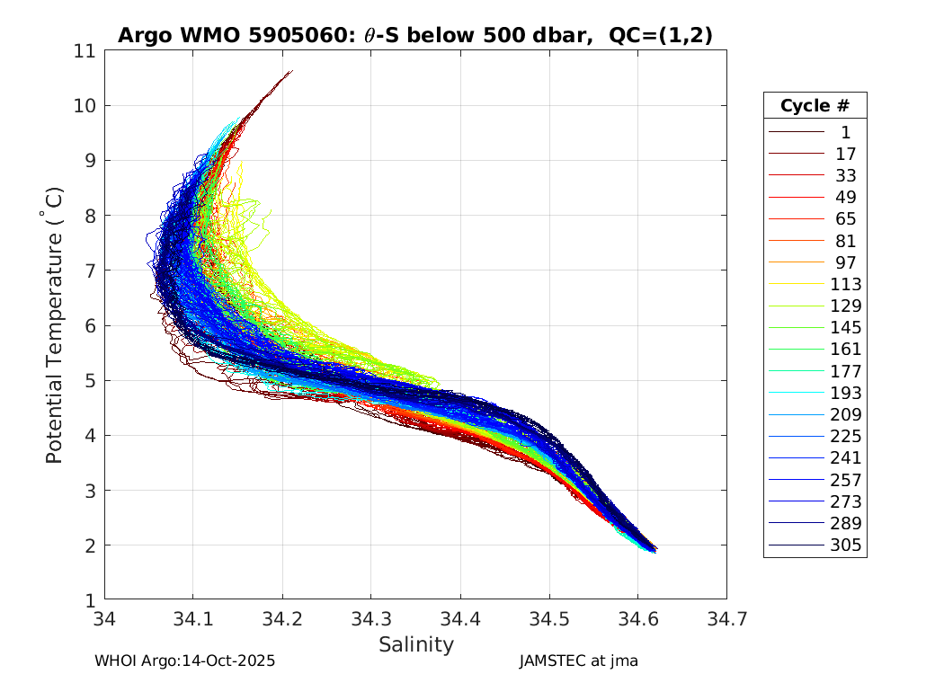 | WMO: #5905057 DAC: jma PI: JAMSTEC NAVIS_A: #674 KISTLER: #4708570 SBE41CP_V7.2.5: #8084 Altimeter Comparison (IFREMER) EuroArgo Link | ![]() |
