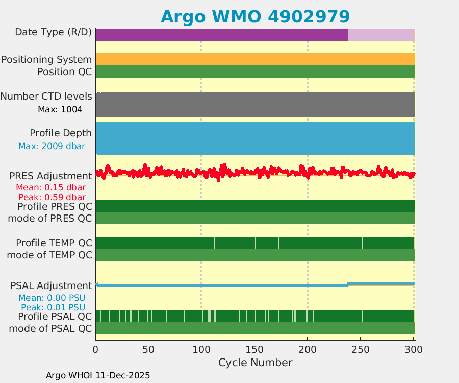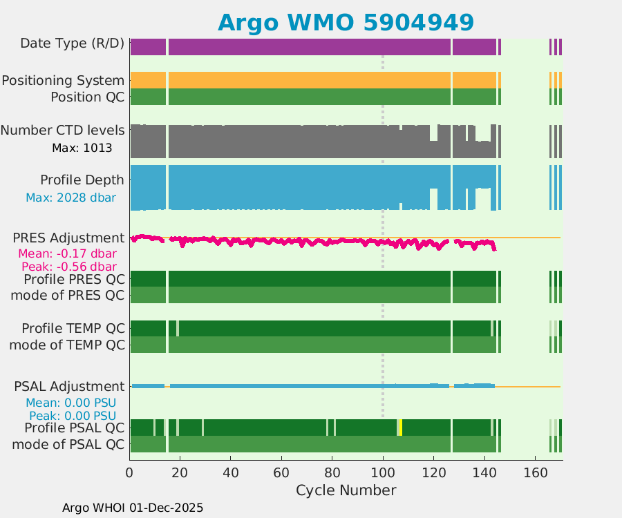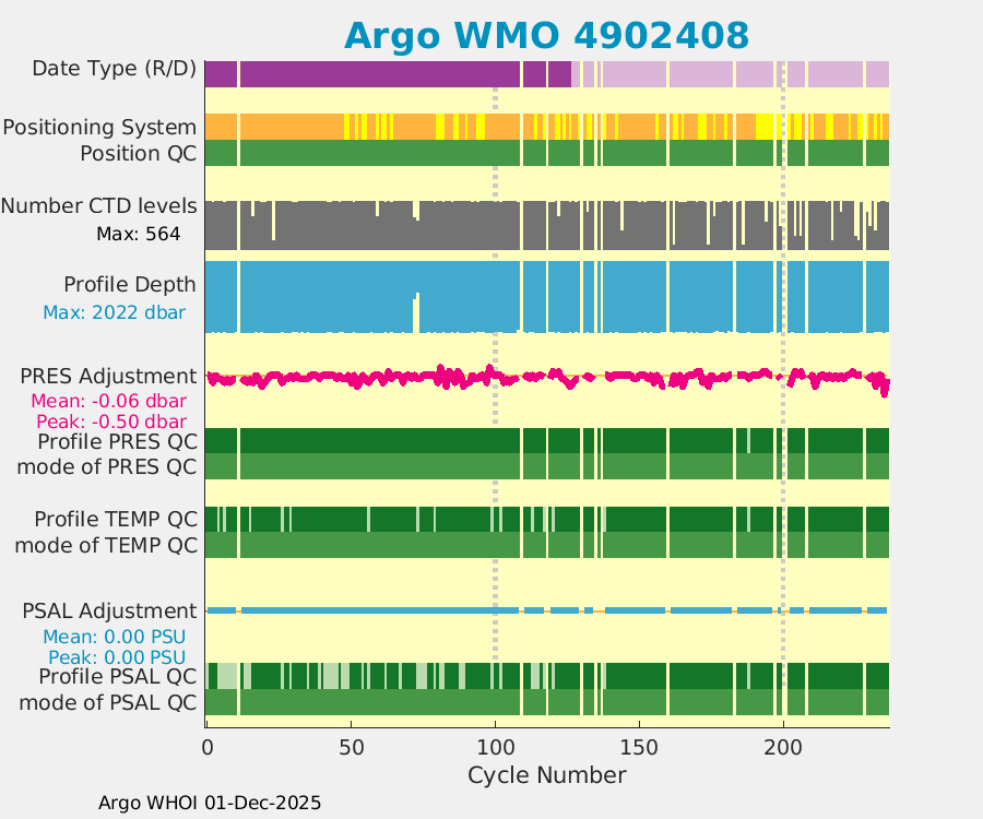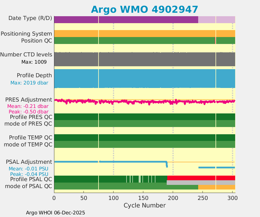 | WMO: #4902371 DAC: jma PI: JAMSTEC NAVIS_A: #585 DRUCK: #10083717 SBE41CP_V7.2.5: #7796 Altimeter Comparison (IFREMER) EuroArgo Link | ![]() |