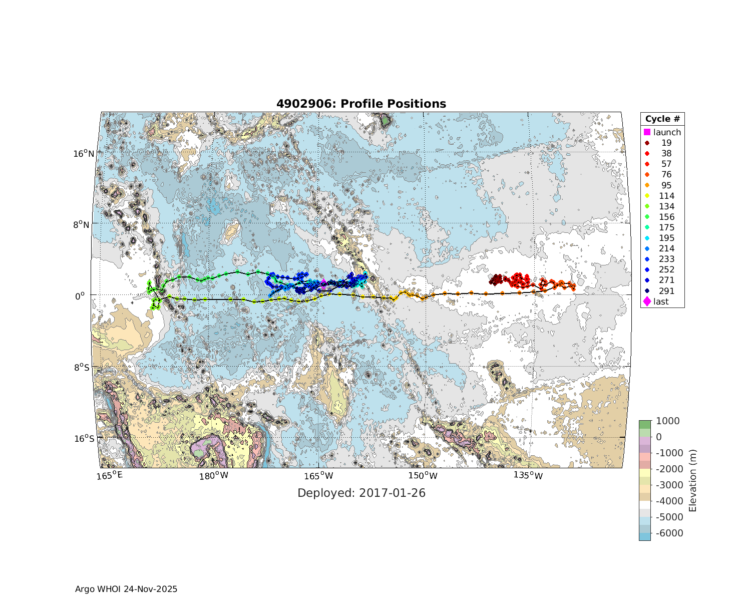 | WMO: #2902707 DAC: csio PI: JIANPING XU HM2000: # SBE41CP: #7656 KISTLER: #4673505 Altimeter Comparison (IFREMER) EuroArgo Link | ![]() |